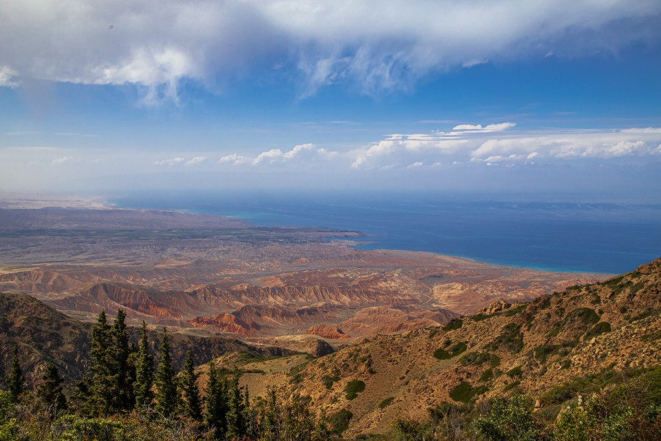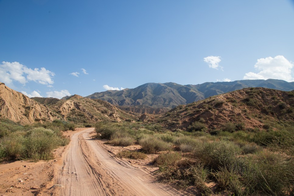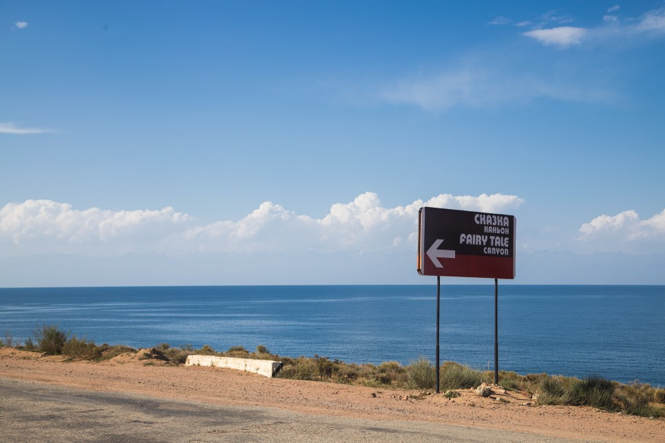 한 여행자가 서 있다. 머리부터 허리까지 오는 큰 배낭을 메고 있다. 앞에는 작은 가방을 하나 둘러멨다. 옆에는 트레킹화가 달려있다. 헝클어진 머리, 검게 그을린 얼굴. 장기 여행자임에 틀림없다. 서로 눈인사를 하며 동질감을 느낀다. 마슈르카 차량에 사람이 채워지길 기다리고 있다. 카라콜에서 비슈케크로 바로 이동할 수 있지만 스카즈카 캐년을 가보고 싶었다. 시내를 벗어나 전원 풍경을 달린다. 왼편으로 우뚝 선 산군, 오른쪽으로 이식쿨 호수가 끝없이 펼쳐진다. 산과 바다가 어우러진 해안 도로를 달리고 있다. 2시간 정도 이동하면 가지사이(kadji-sai) 마을에 도착하기 전 장엄함 스카즈카 캐년을 만난다. 토마르(Tomar)에서 유럽 친구가 내린다. ‘나도 여기서 내려야 하냐?’ 기사님은 손을 저으며 다음에 내리라고 한다. 출발 전 시원한 콜라를 드린 보답이다. 4km를 더 가니 표지판이 보인다. 캐년 입구 길가에서 내려 주셨다.