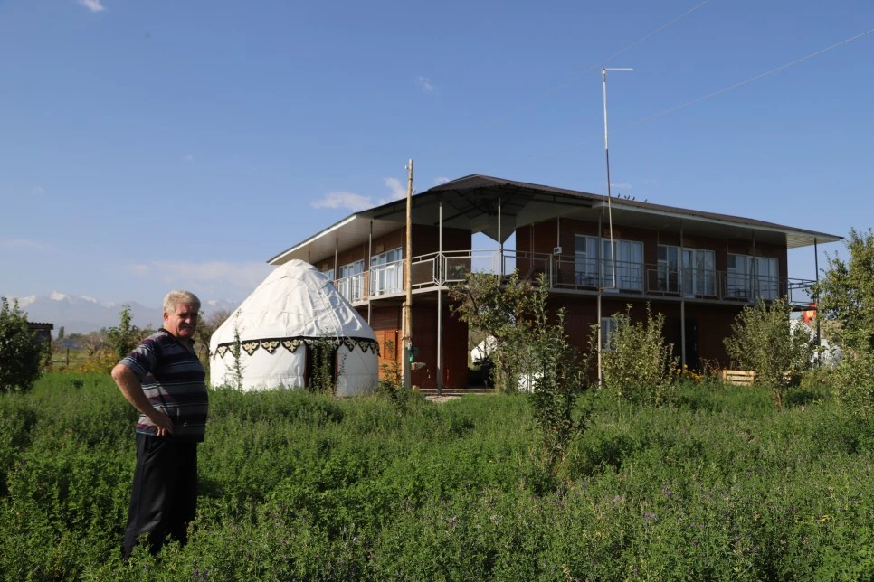 바키의 유르트 옆집 할아버지 시다. 정원을 갖춘 가정집이다. 먹음직스럽게 달린 살구를 한 봉지 따서 주신다. 달고 맛이 있다. 컨테이너 4개를 조립해서 만든 2층 구조의 게스트 하우스이다. 작은 수영장. 반야 사우나도 있다. 방마다 키르기스스탄의 유명지역 사진을 테마로 꾸몄다. 컨테이너로 이렇게 고급스럽게 만들다니 신기하다. 2층 테라스에서 보는 호수 경치가 좋다. 할아버지는 혼자 지내고 계셨다. 오가는 사람들이 많지 않은 곳이다. 멋진 아지트를 자랑하고 싶으셨나 보다. 자신만의 힐링 공간은 행복 중의 하나이다. 화려한 곳이 아니어도 소박하게 머물 수 있는 이곳이 마음에 든다.