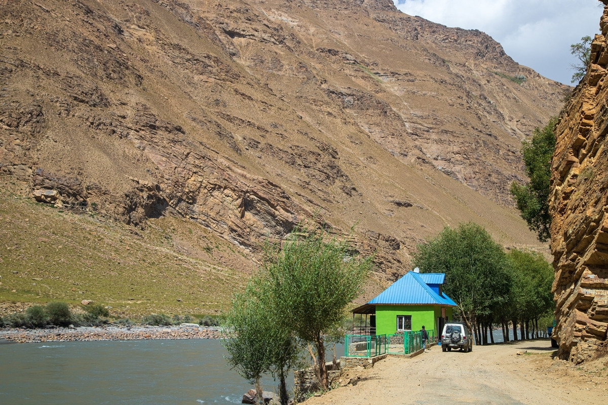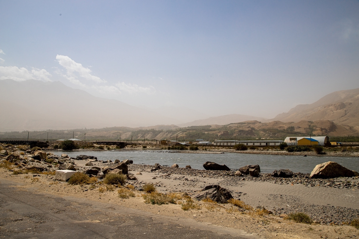 마을의 아침은 부산하다. 메인거리를 오가는 사람들도 많다. 정장을 잘 차려입고 핸드백을 든 여성도 보인다. 비포장 자갈길은 아스팔트공사를 하고 있다. 길을 통제하고 있어 우회해서 마을을 벗어난다. 4km 정도 가니 국경 통제소가 보인다. 국경은 다리하나로 연결되어 있다. 매주 토요일 아프가니스탄과 타지키스탄 사람들이 모여 큰 장이 열린다. 서로간의 왕래가 있는 곳이라 건물도 많이 있다. 아쉽지만 일정상 바자르 구경을 할 수 없다.