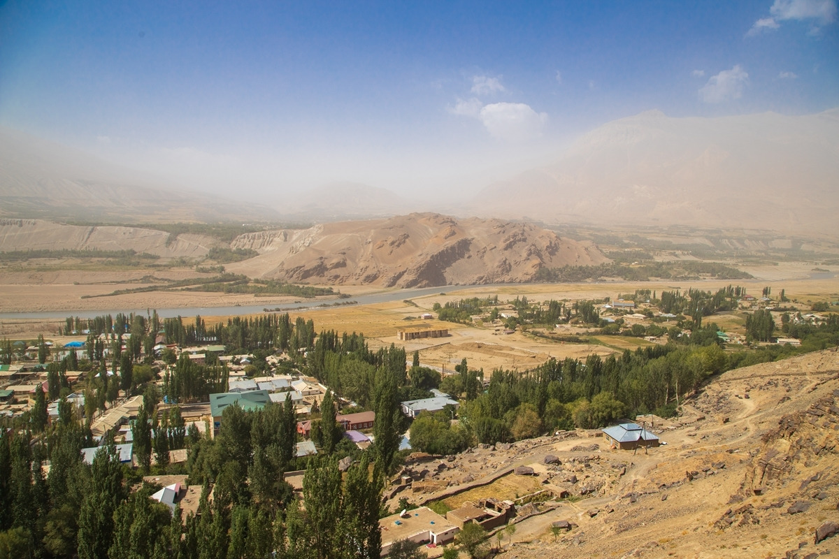 ▲ 이시카심 마을 언덕에서 바라본 전경. 강을 건너면 아프가니스탄이다