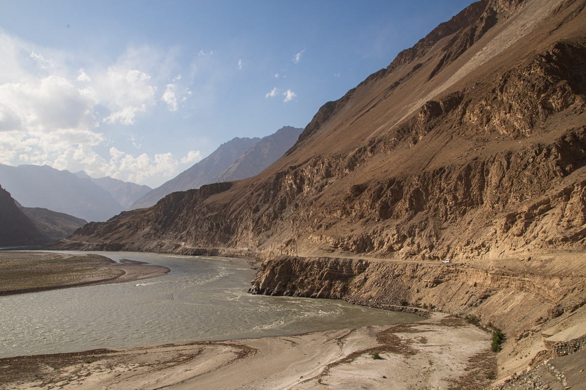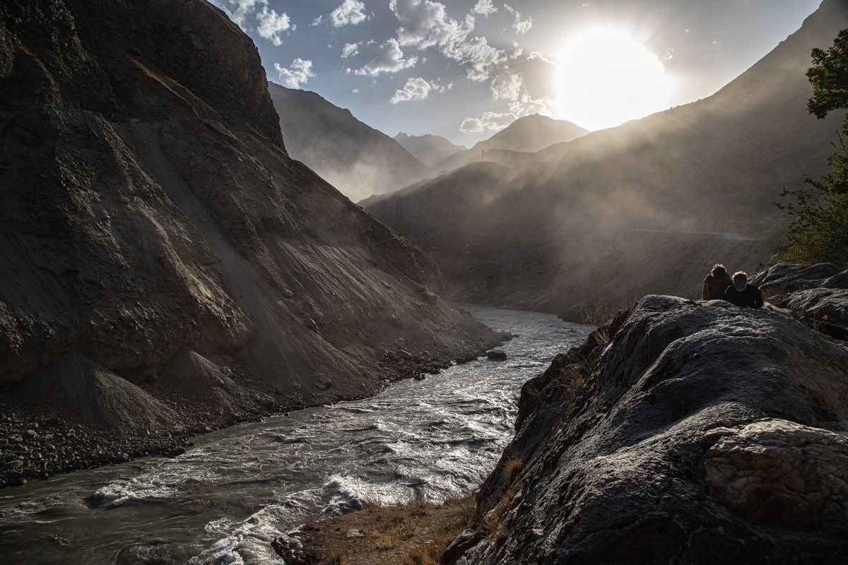 시장에 들러 물과 과일을 구입했다. 키르기스탄 솜(som)은 타지키스탄에서 사용이 어렵다. 은행에서도 안된다. 결국 드라이버에게 교환을 했다. 여행이 끝나면 다시 키르기스탄으로 돌아갈 것이다. 시내를 벗어나 다시 강을 따라 이동한다. 언제 도시를 지났다 외딴 협곡속이다. 주황색 옷을 입은 자전거 커플이 보인다. 앞뒤로 짐을 장착했다. 지친 기색 없이 열심히 페달을 밟는다. 란가르로 향할 때 생수를 건냈던 여행자가 생각이 난다. ‘지금도 잘 다니고 있겠지!’