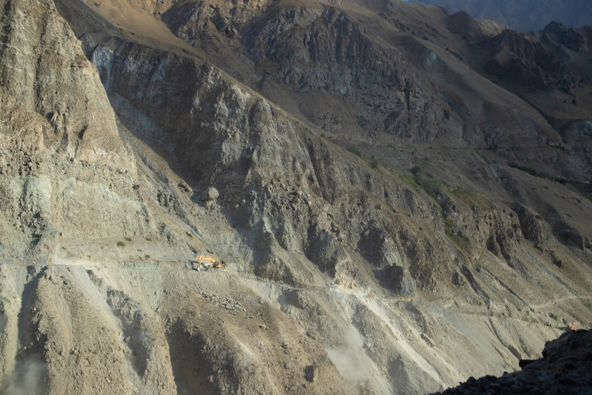 ▲ 강 건너 아프가니스탄 절벽에 길을 내고 있는 중장비