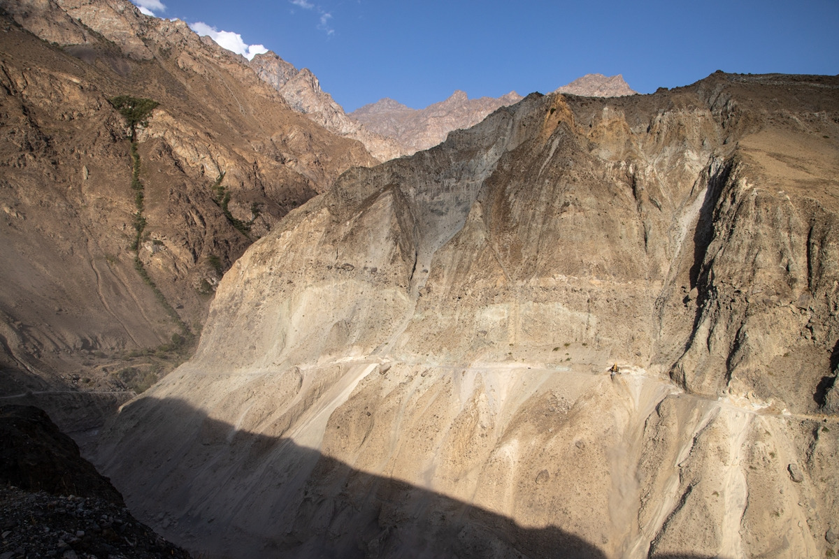 날씨가 더워서인지 식욕이 없다. 왔던 길을 되돌아가 검문소를 통과한다. M41도로에 합류했다. 비포장 도로라 속도가 나지 않는다. 차량의 흙먼지 때문에 시야를 가린다. 아침 안개도 아닌데 계곡은 희뿌연 먼지가 가득하다. ‘우두두 쾅쾅’ 아프가니스탄 깍아지른 절벽에서 계곡으로 무언가 떨어지고 있다. 산길을 불도저가 정비하고 있다. ‘불도저가 절벽에 어떻게 올라가 있을까?’ 보기만 해도 경사가 아찔한데 지그재그 길이 있다. 막힌 도로의 흙과 돌을 계곡으로 쓸어내고 있었다. 수직의 벽에 붙어 있는 그림 같다.