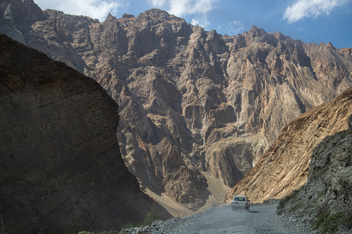 강폭은 좁아졌다. 냇물처럼 유유히 흐른다. 사람이 다닐 수 있을 정도의 거리이다. 아프가니스탄에 선입견으로 다소 긴장이 되는 곳이다. 군인과 경찰 검문소를 수시로 만난다. CCTV는 없지만 장부에 신상을 기록하며 여행자의 안전과 동선의 관리가 된다. 여권과 파미르 허가증을 보여주면 별일 없이 통과할 수 있다. 하늘 높이 치솟은 거벽은 세상으로부터 성지를 호위하고 있다. 순간이동을 해서 화성에 온듯하다. 드라이버는 이동하는 내내 어딘가 계속 전화를 주고받는다. 속도를 내며 달린다. 경치가 좋은 곳에서는 차를 세워준다. 전방에 랜드크루저 한 대가 서 있다. 외국인을 태운 차량이다. 누군가 보니 어제 숙소에서 만났던 드라이버의 친형이다.