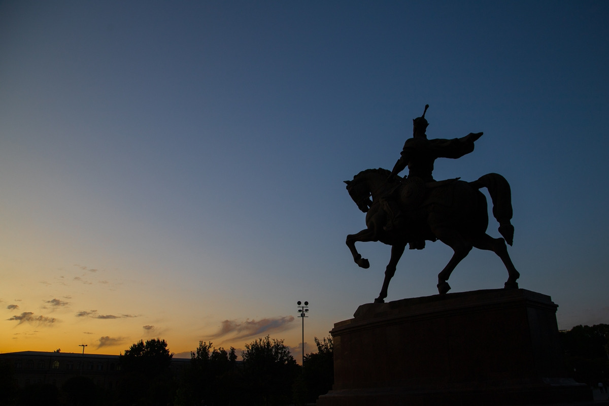 아미르 티무르(1336 - 1405)는 사마르칸트 부근 케시에서 태어났다. 우즈베키스탄 사람들에겐 정신적인 영웅이다. 칭기스칸 이후 최대의 영토를 차지한다. 이란에서 중앙아시아에 이르는 통치자였다. 제국의 수도는 사마르칸트였다. 1405년 중국 명나라 원정길에 병사를 한다. 그의 죽음으로 제국의 꿈은 멈추게 된다. 시신은 사마르칸트의 구르 아미르에 안치되었다.