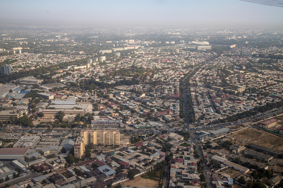 이른 새벽 예약 택시를 타고 공항으로 향한다. 마지막 귀국 여정이다. 두산베에서 우주베키스탄 타슈켄트로 이동이다. 한나절 정도 여유가 있어 시내를 둘러볼 수 있다. 파미르에서의 시간이 꿈같이 지났다. 오늘도 고원길을 달려야 할 것 같은데 허전한 마음이 든다. 저비용 소남(Sonam)항공으로 50여분 소요된다. 고도를 낮게 산악지역 위로 비행한다. 마운틴 플라잇을 하는 느낌이다. 황토빛 노란색부터 붉은 적토까지 다양한 색이다. 봉우리에 히끗한 눈들이 쌓여 높은 산들임을 알게 한다. 어느 순간 광활한 평야가 시작된다, 치크치크 강과 이어진 운하가 도시를 가로 지른다. 중앙아시아에서 가장 큰 도시 타슈켄트에 도착한다.