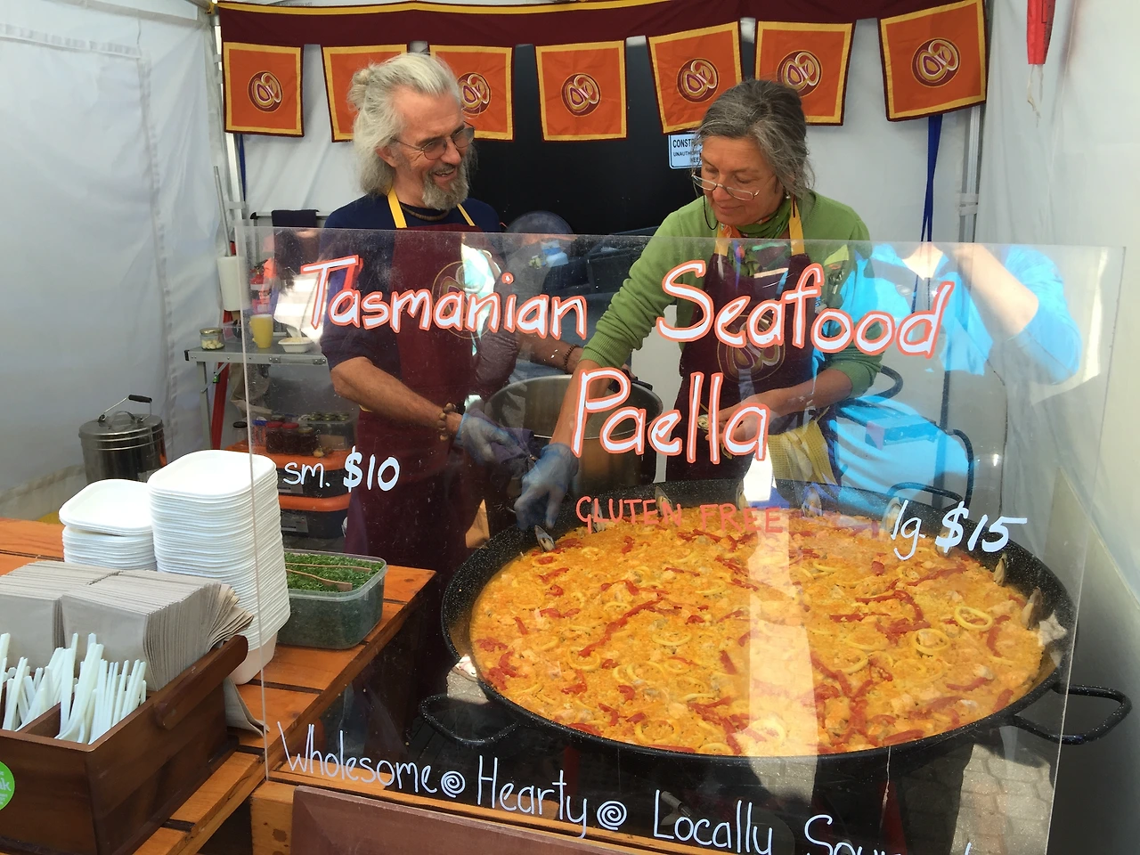 ▲ 살라망카 마켓 거대한 해물 빠에야를 만들고 있는 행복한 노부부