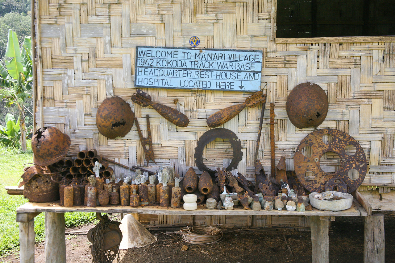트레일의 가장 높은 벨라미 산(2,190m)은 평평한 능선입니다. 몇 개의 마을을 지나게 됩니다. 마나리(Manari)는 경비행기 활주로가 있습니다. 정글의 한 가운데서 문명과 소통합니다. 코코다 전쟁 전설을 만납니다. 오보르(Ovuru) 할아버지는 마지막 ‘퍼지 위지 엔젤(Fuzzy Wuzzy Angel : 104세)’입니다. 자랑스럽게 훈장과 군복을 입고 기념 촬영을 합니다. 마을 곳곳에 전쟁의 흔적이 남아있습니다. 포탄, 탄피, 녹슨 철모 들입니다. 꿈처럼 지나간 시간을 상상합니다.