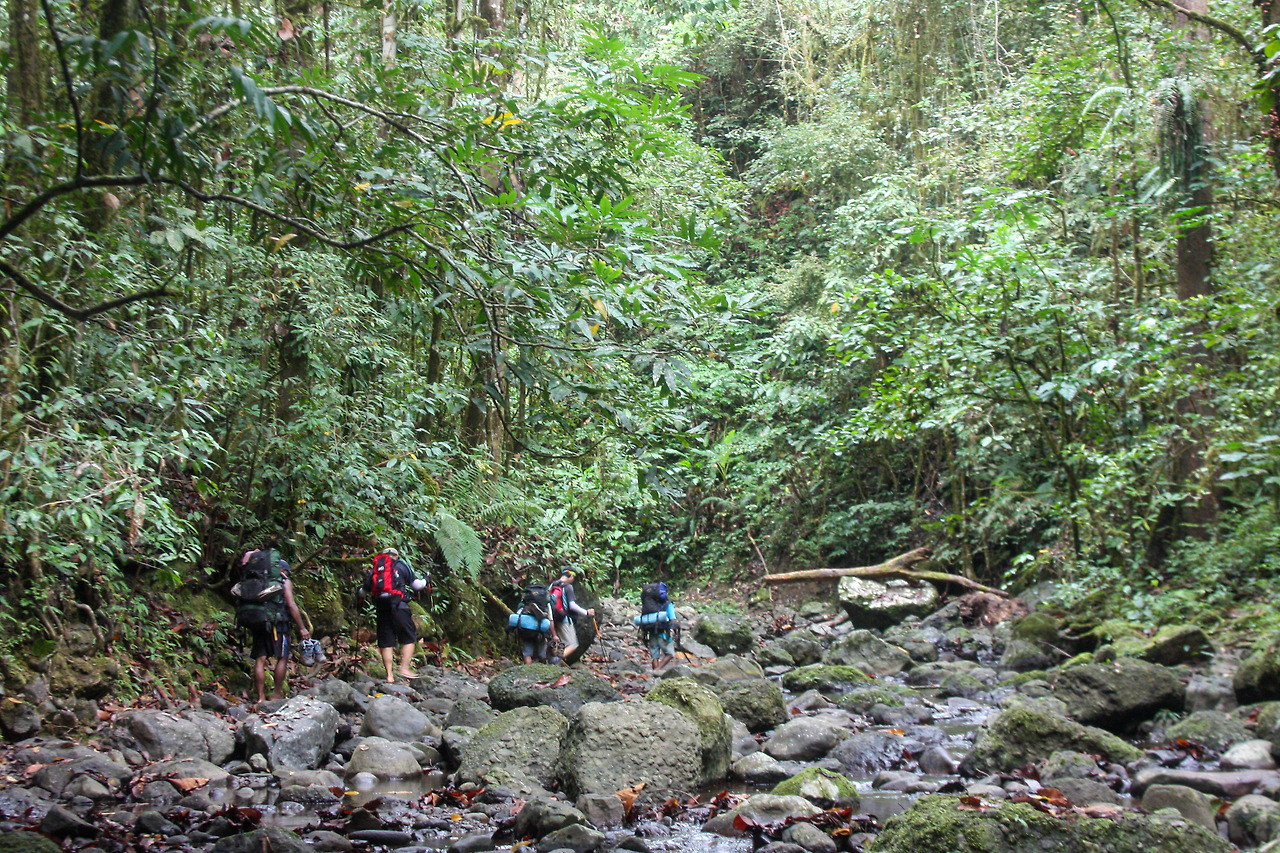 마지막 고비 언덕 임이스트(Imist)입니다. 일본군이 혹독한 정글 환경과 풍토병을 이기지 못하고 후퇴한 곳입니다. 골디리버(Goldie river, 600m)를 따라 가슴에 차는 계곡을 수시로 가로지릅니다. 반대편에서 시작하는 호주 커플을 만납니다. 힘이 드냐고 묻네요. “어떻게 완주를 하려나! 정말 힘든데...” 자연 속에서 마지막 부시 캠핑(Bush campung)입니다.