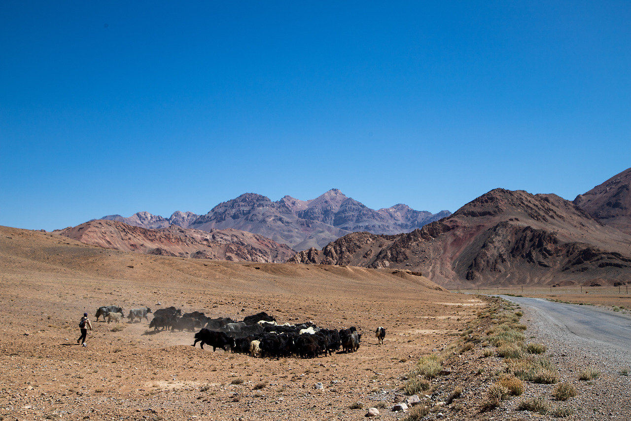 파미르 하이웨이에서 가장 높은 악바이탈(Ak-Baital Pass 4,655m) 고개를 넘는다. 고산병 예방을 위해 수분을 자주 섭취해 주어야 한다. 포장된 도로를 시원스레 달린다. 길의 끝자락에 만년 설산이 있다. 반대편에서 자전거로 넘어온 커플이다. 고행의 끝에 성취감을 느낄 것이다. 무글갑까지 내리막이다. 멋진 풍광들은 사진기 뷰파인더에 담기 모자라다. 차에서 내려 긴 호흡으로 마음에 담아야 한다.