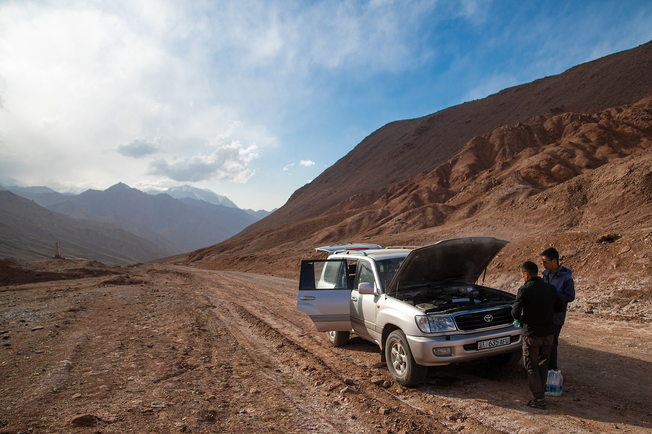 4,300m 차량이 멈췄다. 키르기스스탄과 타지키스탄의 국경이 있는 키질아트 패스(Kyzyl Art Pass 4,298m)를 넘어 남쪽으로 향한다. 황량하다. 엔진 과열 때문인지 시동이 꺼지고 연기가 난다. 사막의 고개 마루, 어둠이 내려 주위는 캄캄하고 기온이 떨어진다. 무엇하나 해결할 수 없을 때 여행자의 시간은 다시 플레이된다.