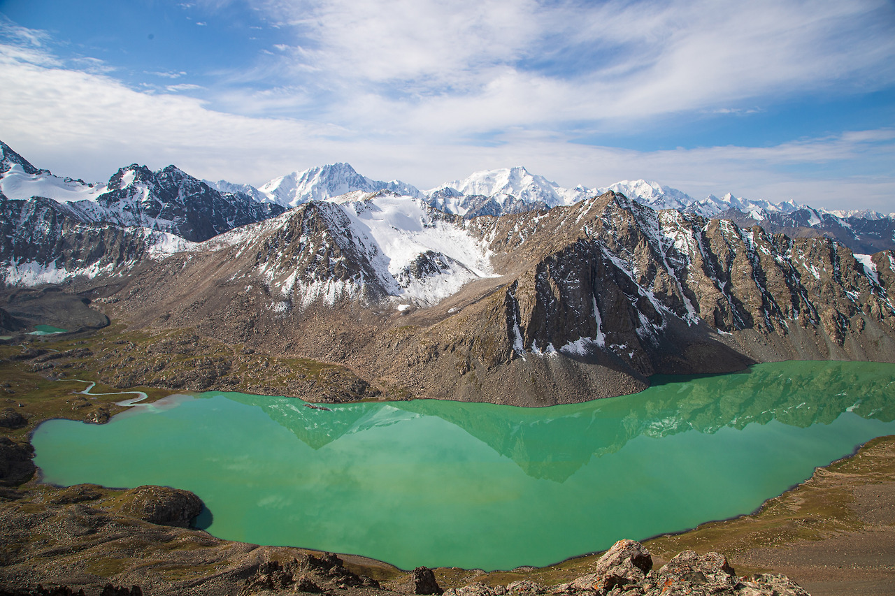 만년 설산과 고원의 초원, 툴파쿨(Tulpakul) 호수 주변에 유목민 캠프(유르트)가 있다. 큰 호수와 빙하 계곡이 펼쳐진다. 새벽 추위 때문에 몇 번을 뒤척였다. 아침 공기가 신선하다. 언덕에 올라 구소련 최고봉 레닌봉(7,128m)을 조망한다. 4,130m 베이스캠프까지 5시간 정도 트래킹이 가능하다. 설산과 빙하. 호수의 어울림! 무아의 세계에 빠져든다.