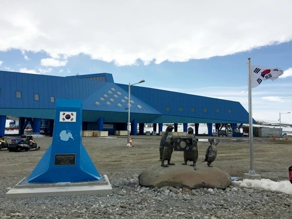 긴 항해 끝에 땅을 밟는 것만으로도 좋다. 기지 입구의 펭귄 가족 동상이 반겨준다. 우리나라, 일본, 캐나다, 미국 국기가 함께 게양되어 있다. 남극에서는 탐사대원 한 명이 나라를 대표한다. 다국적 대원들의 국가를 알 수 있다. 프로젝트를 위해 공동연구에 참여하기 때문이다. 펭귄 가족 동상 장보고기지는 2014년 준공되었다. 펭귄들은 기지에서 멀리 떨어진 해안가에서 집단서식을 한다