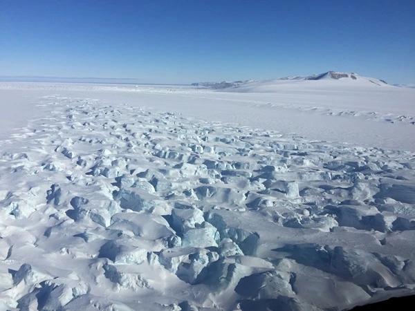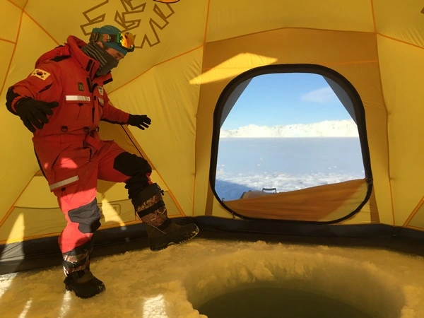 ▲ 장보고기지 앞 바다 '테라노바베이' 약 2미터의 두께 얼음 바다가 형성되었다. 해양 탐사를 위해 얼음 구멍을 만들었다
