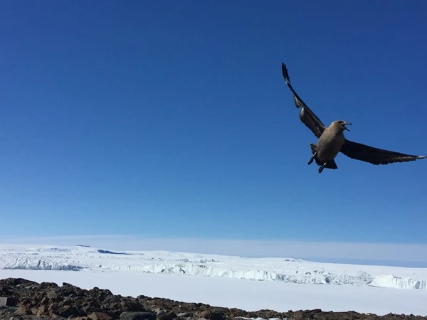 남극의 새 '도둑갈매기'가 나타났다. 펭귄의 알을 훔쳐 먹는 것으로 유명하다. 낯선 이방인을 보고 경계를 하며 정찰 비행을 한다. 부화 시즌이라 예민하다. 기지 근처에 둥지들이 많이 형성되어 있다. 가만히 있었을 뿐인데 노려봤다는 이유로 사납게 달려든다. 깜짝 놀라 눈을 감고 머리를 숙인다. 넓은 물갈퀴의 발로 머리를 치고 간다. '앞으로 잘 지내보자!' 손을 들어 화해의 제스쳐를 취해본다.