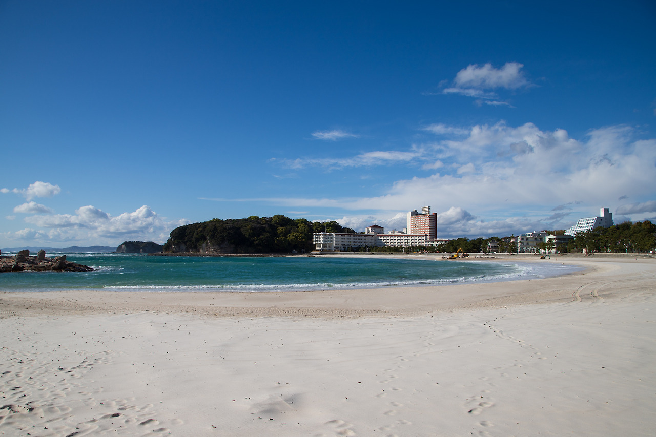열차는 푸른 바다를 가른다. 순방향 왼쪽에 자리하면 달리는 내내 바다를 곁에 둘 수 있다. 시라하마는 하와이 와이키키 해변과 자매 해변을 맺을 정도로 아름다운 풍경이다. 새하얀 백사장과 에메랄드빛 바다. 호주에서 실어 온 고운 백사장이 펼쳐진다. 야자수도 많아 리조트 분위기를 자아낸다.