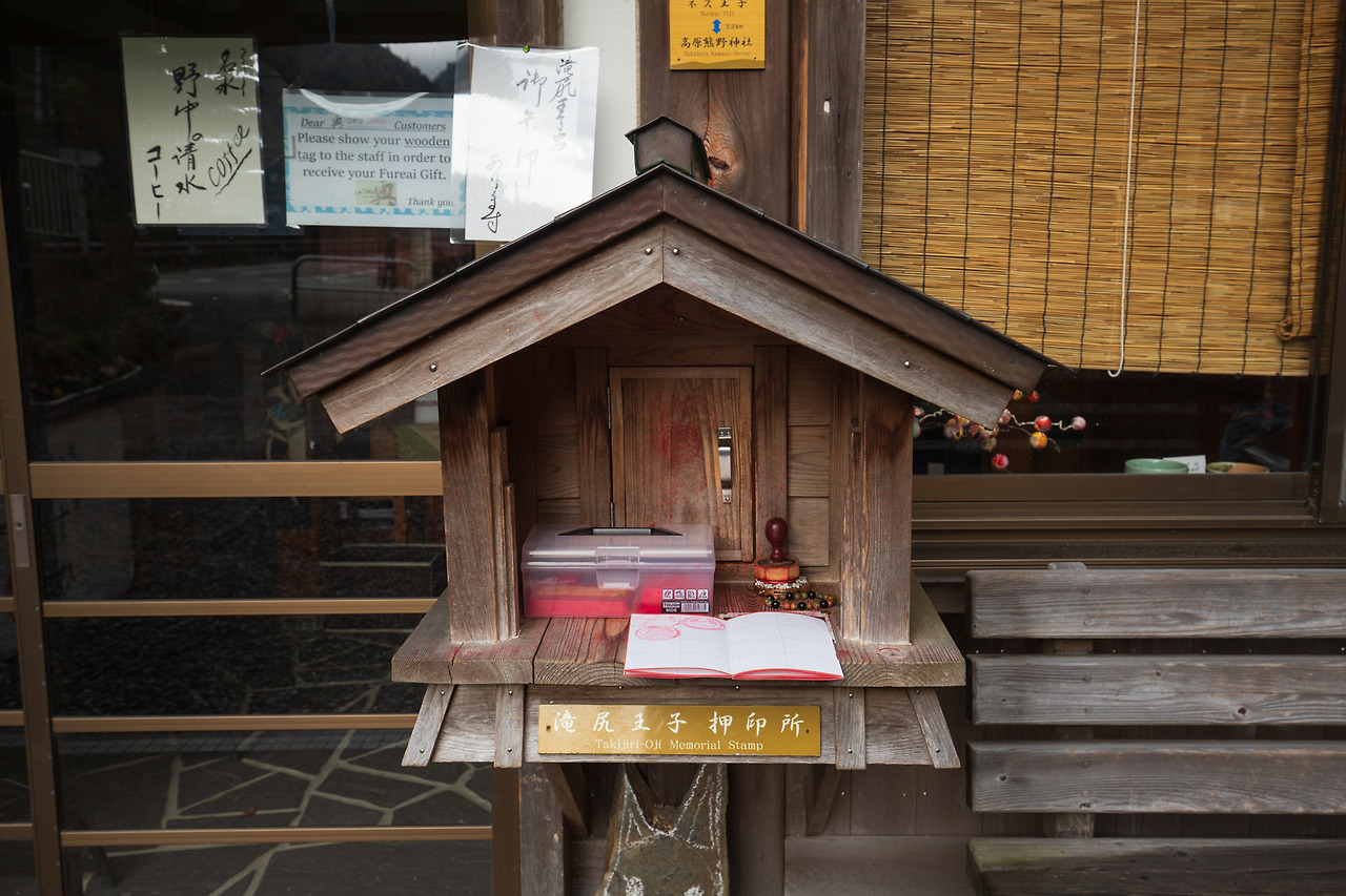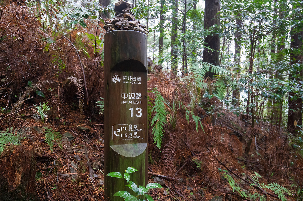 가장 인기 있고 잘 정비된 코스이다. 헤이안 시대(귀족 문화의 절정과 무사계급 태동 시기 794~1185)부터 귀족들이 이용한 전통적인 순례길이다. 타키지리오지를 출발하면 첫 구간부터 오르막이다. 체력 안배에 유의해야 한다. 숲으로 들어서면 높이 뻗은 삼나무 숲이 이어진다. 구마노 지역은 연중 강수량이 풍부하다. 온화한 기후 영향으로 침엽수가 잘 자라는 환경이다. 일본의 전쟁 전후 기간 목재 수요가 많아 삼나무와 편백나무를 대규모로 조성했다. 인공 조림의 결과이기도 하다. 스탬프는 보통 신사나 구간별 작은 목재 스탠드에 비치되어 있다. 다음 순례자를 위해 잉크가 마르지 않도록 사용 후 패드를 닫아준다. 트래킹 중의 숙소는 제한적이다. 작은 마을의 홈스테이, 게스트 하우스를 이용할 수 있다.