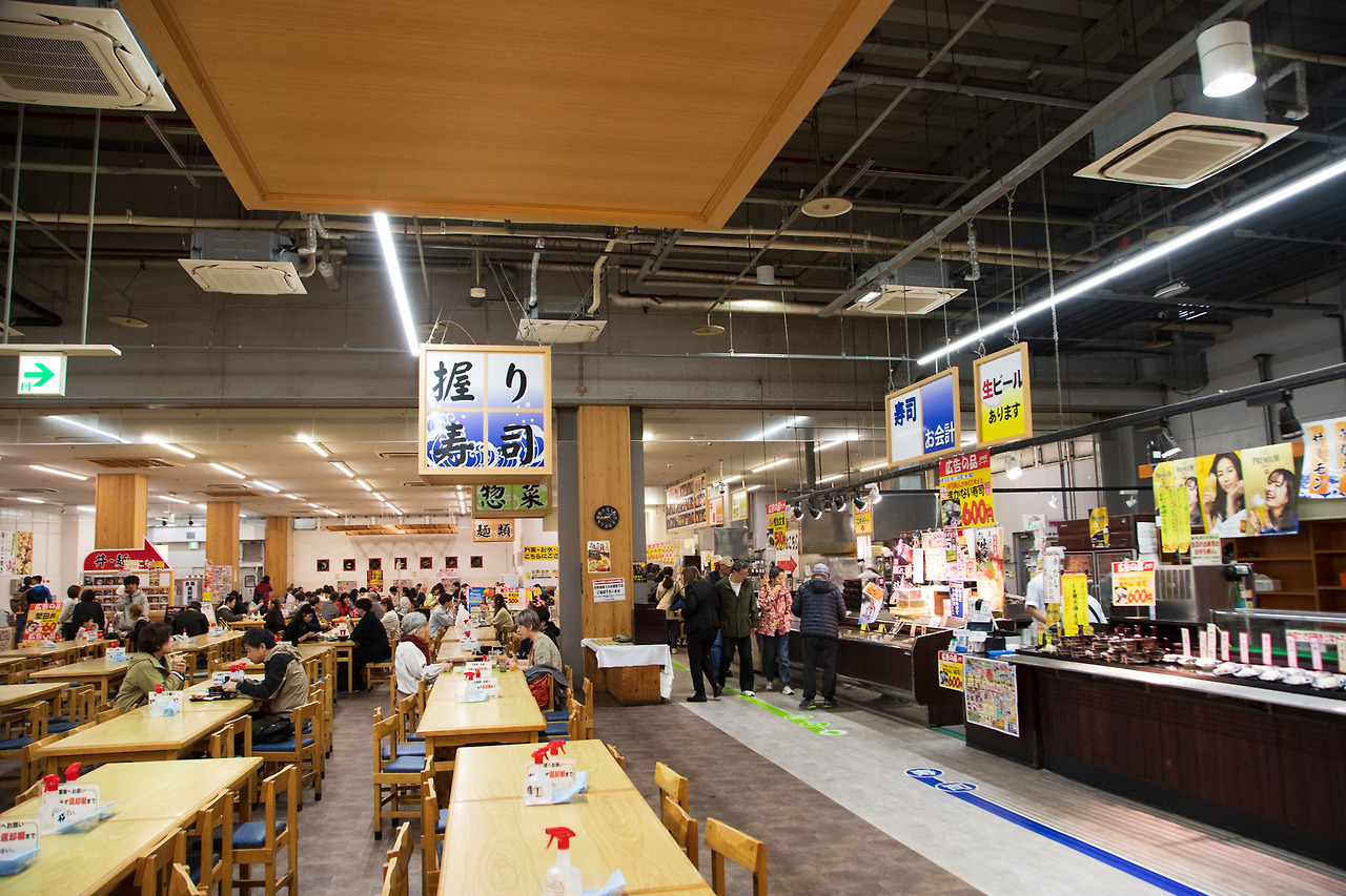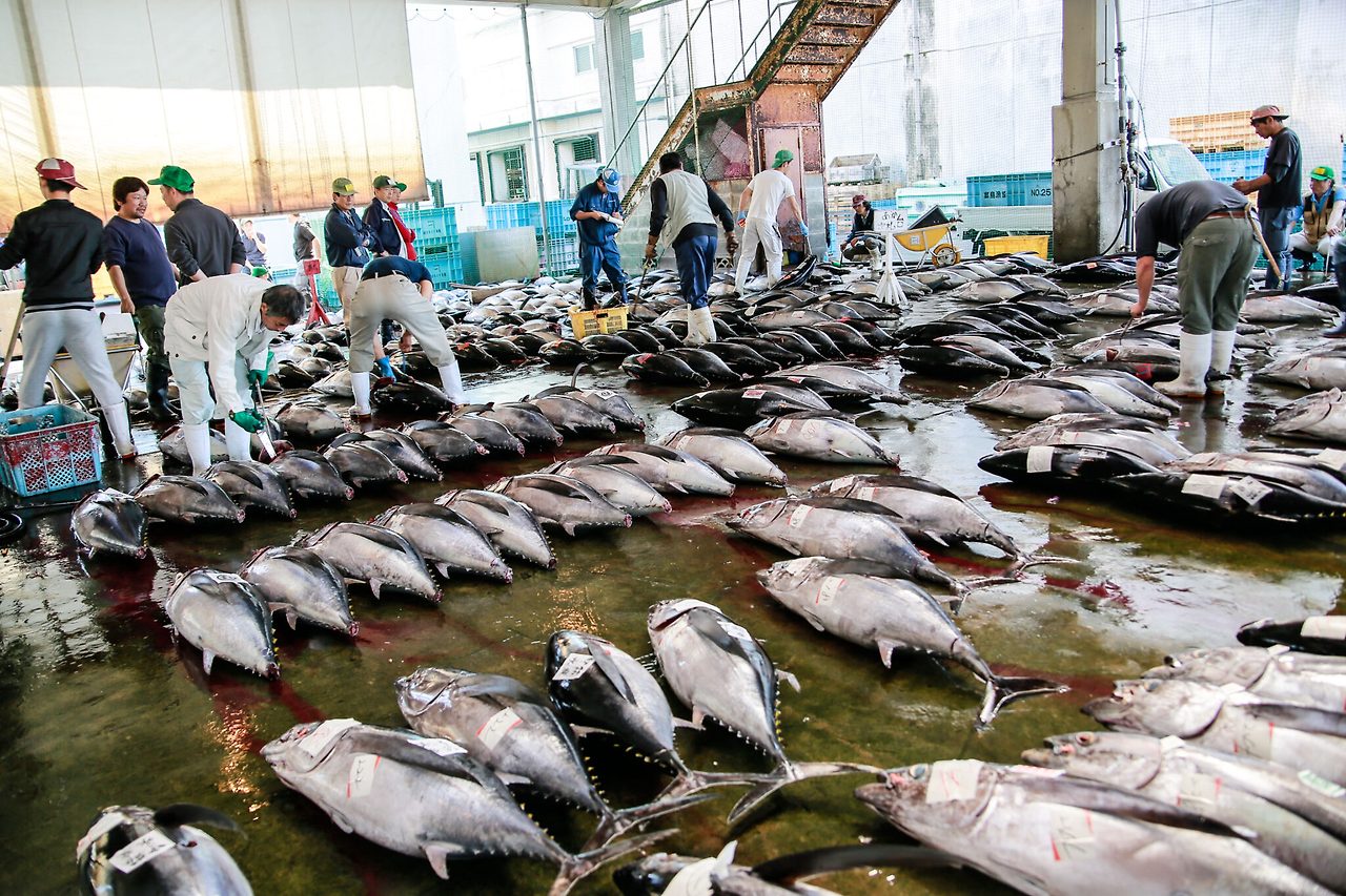 이른 아침 수산 시장은 활기는 대단하다. 일본 최대 참치 어획 항구에서 전국으로 신선한 참치들이 공수된다. 여행자들은 2층 전망대에서 경매 현장을 참관할 수 있다. 주변 식당에서는 해동되지 않은 신선한 생참치 요리를 맛볼 수 있다. 거대한 참치 해체쇼는 특별한 볼거리를 제공한다.