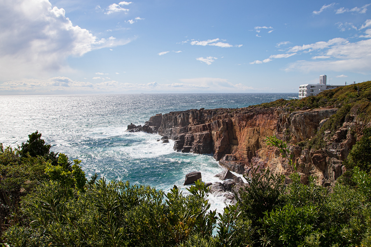 절벽 아래 지하 36m의 동굴이 있다. 헤이안 시대 배를 숨겼던 해식 동굴이다. 엘리베이터를 타고 내려가 내부를 관람할 수 있다. 방풍림 소나무, 너도밤나무, 알로에 등이 서식하는 해안 산책길이 조성되어 있다. 바위는 파도에 의해 깎인 독특한 형상들이다. 탁 트인 바다 전망과 기암괴석들이 어우러져 장관을 이룬다.
