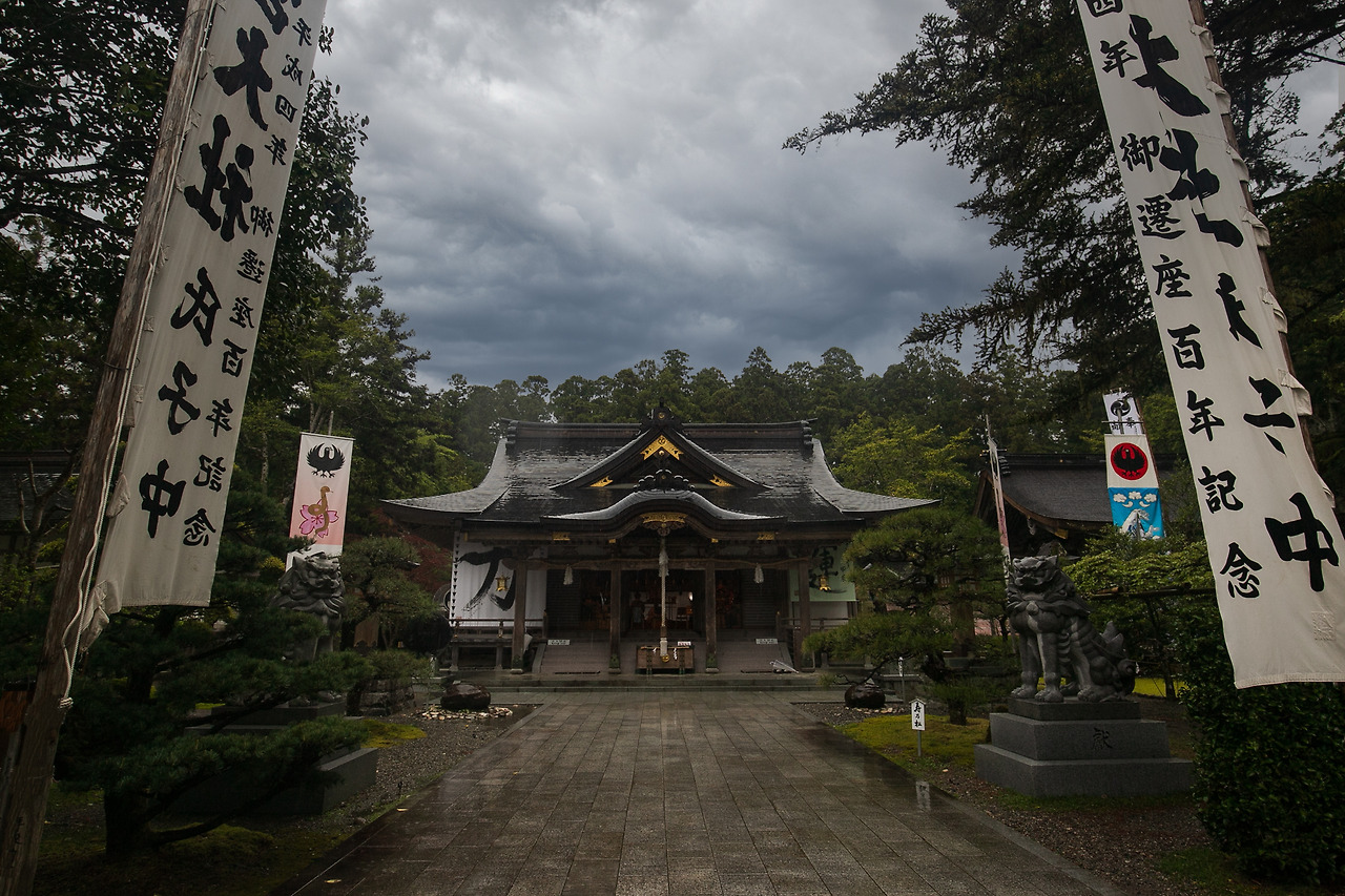 혼구 타이샤는 순례길의 종착지이다. 정문으로 향하는 158개의 돌계단은 신성한 영역으로 들어가는 상징적인 통로이다. 양 옆 봉헌 깃발이 경건한 분위기를 자아낸다. 계단을 오르면 편백나무 껍질로 지붕을 덮은 아름다운 목조 건축물을 볼 수 있다. 순례증을 받기위해 혼구 타이샤 정문 부근 인포메인션 센터를 방문한다. 스페인 산티아고 완주증을 지참하면 ‘이중 순례증’을 받을 수 있다. (혼구 타이샤 주지 승려의 주제 종이 와시로 배경에 '길' 문자 증서)