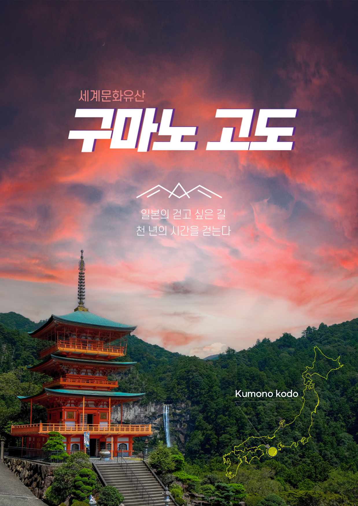 와카야마 현에 위치한 구마노 고도. 아름다운 자연경관과 오랜된 역사의 길이다. 1000년 이상의 순례길로 세 신사(구마노 혼구 타이샤, 하야타마 타이샤, 나치 타이샤)를 잇는다. 울창한 숲과 계곡, 험준한 산을 넘는다. 독특한 시골 문화를 체험한다. 걷기 후 온천에 몸을 담그면 하루의 피곤이 풀린다. 맛있는 요리를 먹으며 힐링의 시간을 갖는다.