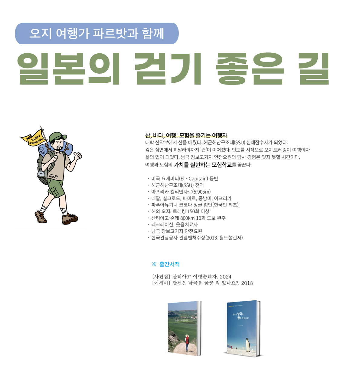 걷기 열풍이 대단하다. 매년 스페인 산티아고를 걸었다. 한국인 여행자들은 증가하고 있다. 종교적인 길은 여행자의 버킷리스트가 되었다. 의미는 다양하다. 사람들을 만나며 내 안으로 향하는 희로애락! 반복적인 일상 속에 복잡했던 상념들이 자리를 찾을 즈음. 산티아고 콤포스텔라에 도착한다. 순례자는 또 다른 삶의 걷기를 갈망한다. 유네스코 세계문화유산 천 년 순례길을 걷는다.