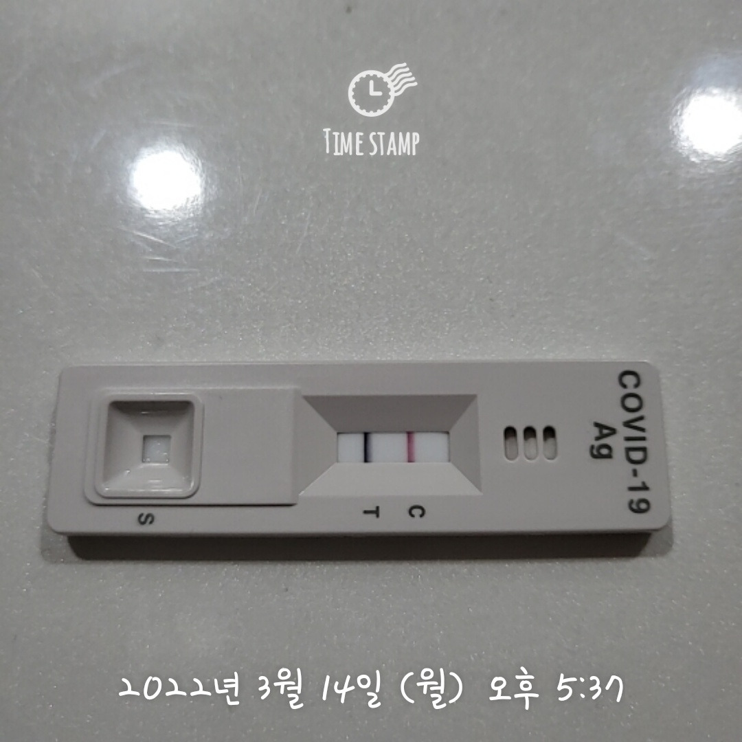 그렇게 병원 방문 이틀 전 '오늘도 음성이겠지?' 하며 아무 생각 없이 코를 또 찌르고 자가 키트를 했어요.