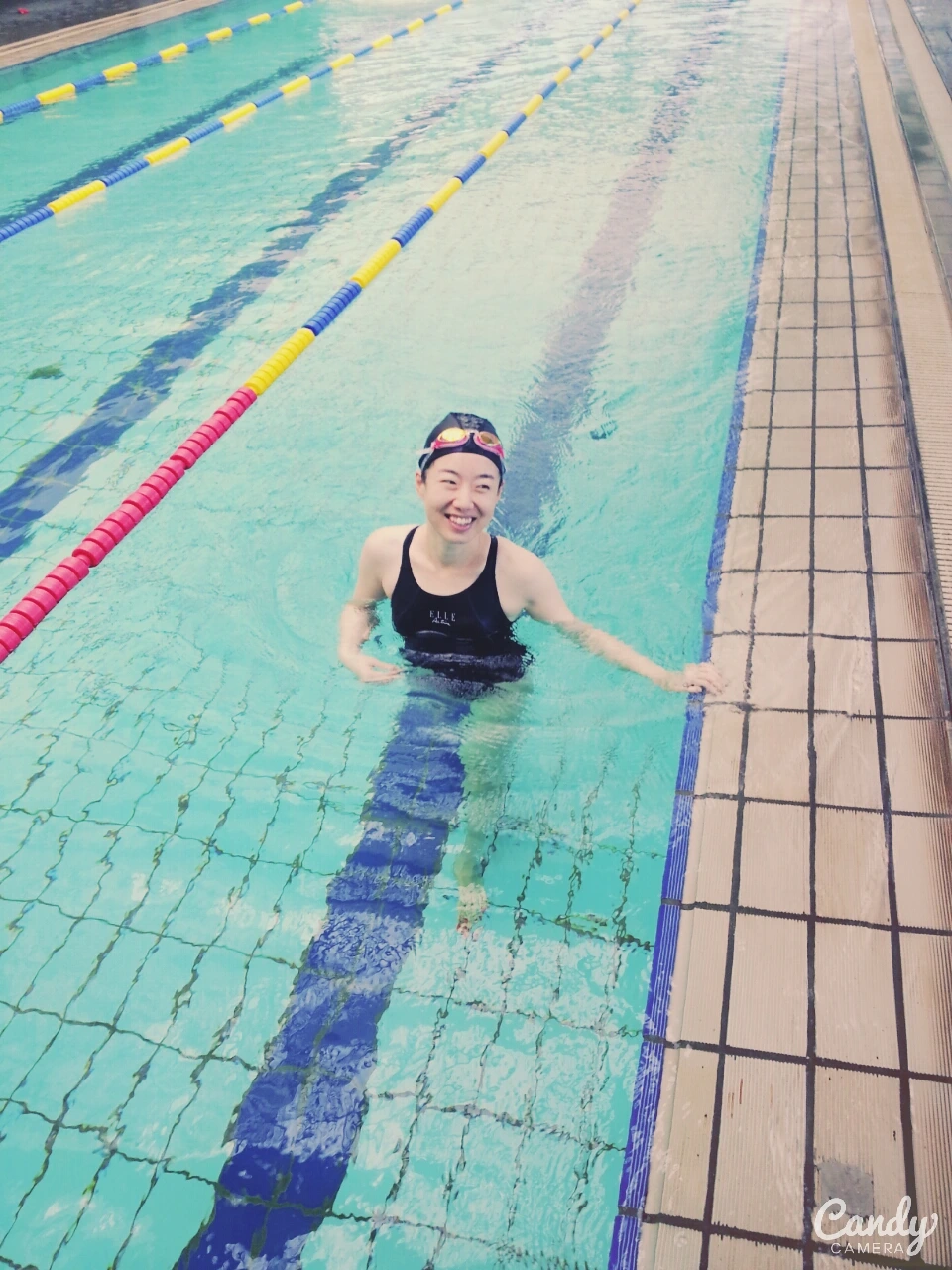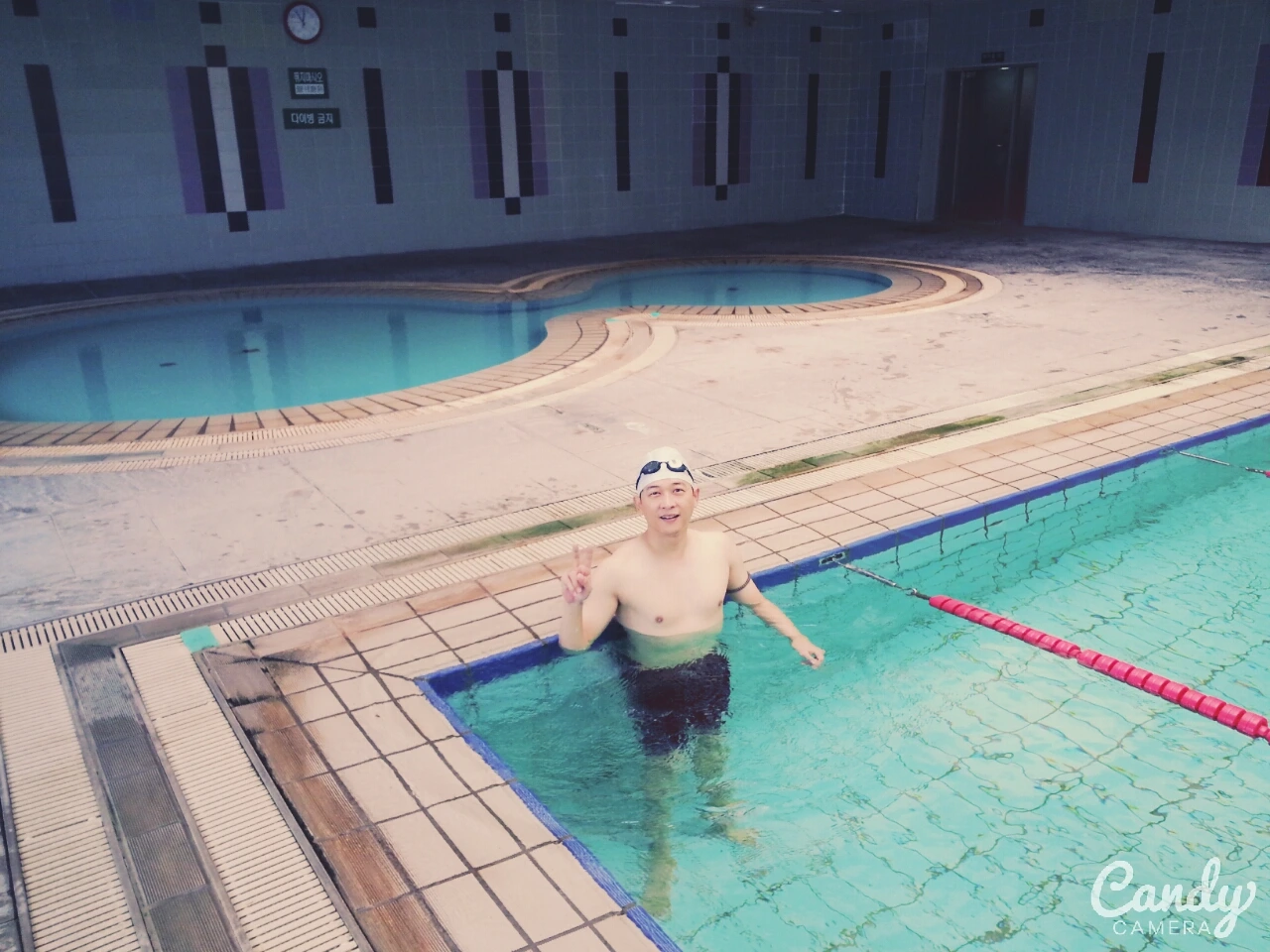 오, 드디어 온천물의 수영장! 내가 먼저 들어와서 준비운동을 하고 있는데, 저쪽에서 남편이 들어왔다. 근데 1레인에서 수영을 하던 아주머니가 남편을 먼저 반기며,