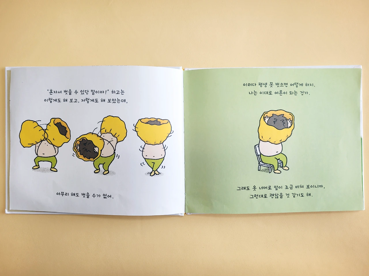 이렇게 생활에 밀접한 그림책 안에, 아이의 순수한 고민, 철학적 깨달음, 웃픈 감동이 모두 들어있다.