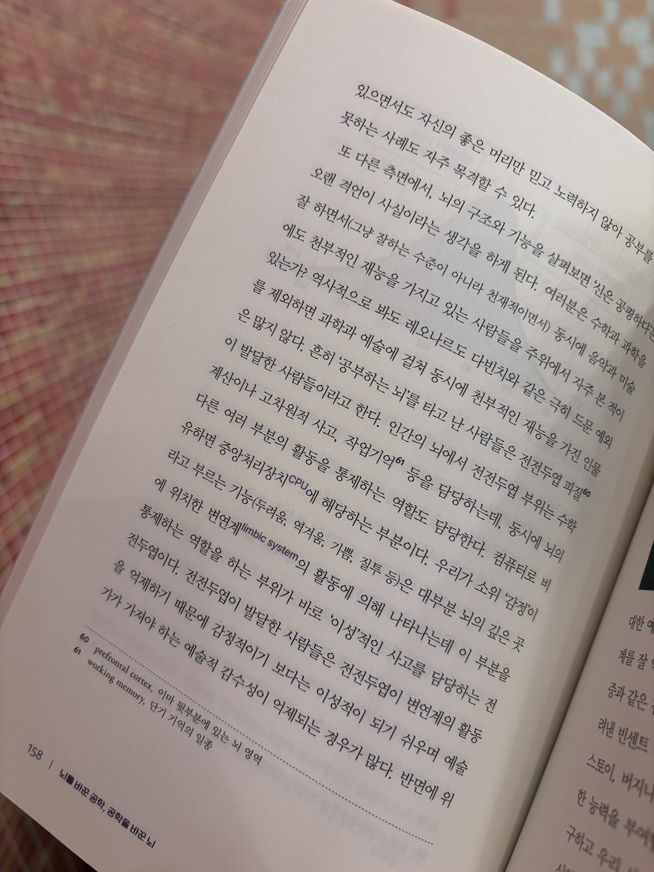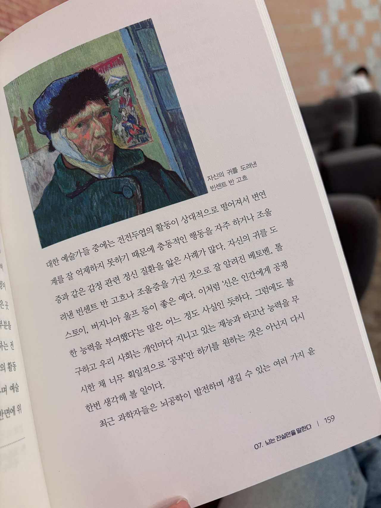 이렇듯 나에게 뇌 이야기는 확실한 증거물을 내미는 듯해서 속이 시원하다. 평소에 내가 가진 기질과 감성이, 인과관계 설명이 확실하지 않고 근거 있는 이론에 기반하지 않은 것들 투성이라서 더 그런 것 같다. 그래서 어떤 편이든 나에게 도움이 되는 학문임은 확실하기 때문에 더 궁금하다.