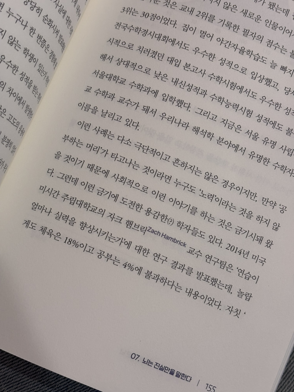 ‘우리 사회는 개인마다 가지고 있는 재능과 타고난 능력을 무시한 채 너무 획일적으로 공부만 하기를 원하는 것은 아닌지’라는 교수님(저자)의 말에도 공감이 간다.