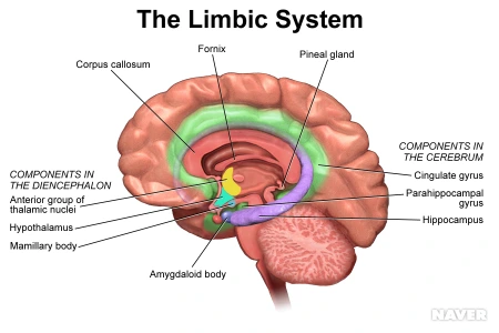 *변연계: 변연계(limbic system)는 대뇌(cerebrum)와 간뇌(diencephalon)의 경계를 따라 위치한 뇌의 구조물들로 구성되어 있으며, 해부학적인 실체라기보다는 기능적인 그룹으로 정의할 수 있다. (중략)
