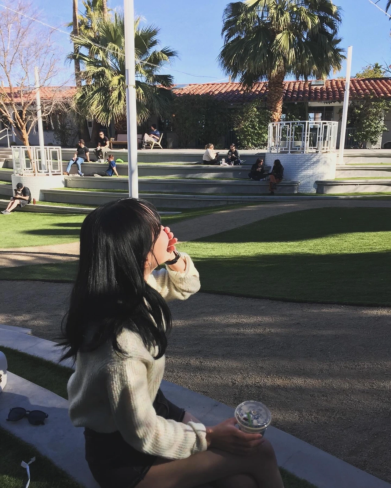 박물관을 나와 향한 곳은 바로 'eat.'이라는 브런치 가게였다. 평점이 좋았고, 인기가 많아 보였다. 이곳은 박물관에서 도보 10-15분 정도의 거리에 위치해 있다. 햇살이 좋고, 기온도 따뜻하여 걷기 좋은 날씨였다. 적당한 기온에서 따뜻한 햇살을 맞으며 걷는 것은 정말 오랜만이었다. 보정을 하지 않아도 미국 하늘은 정말 파랗고 구름 한 점 없다. 거리에 늘어진 야자수는 마치 정말 '휴양'의 느낌이 물씬 들게 했다.