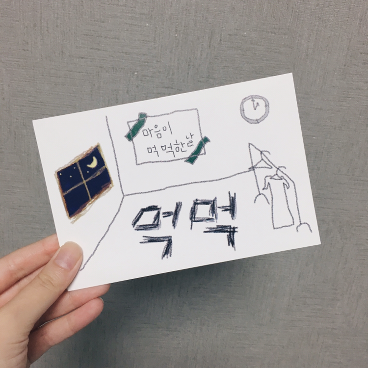 제가 이번에 출간한 책은 <먹먹>이라는 책이에요. 마음이 먹먹하다 할 때 그 먹먹이요. 왜 그런 날 있잖아요. 딱히 기쁘지도, 슬프지도 않은 마음이 먹먹한 날. 그런 날 이 책을 읽고 위로받으셨으면 해요. 타인의 마음을 글로 만져 위로하고, 공감하고, 소통할 때 비로소 진짜 이야기가 나오지 않을까 싶습니다. 그리고 선착순 200분에게는 엽서도 한 장씩 넣어서 드릴 예정입니다. 참고로 제가 표지 디자인 시안으로 직접 그렸던 그림(?)이에요. 하하하... 그냥 버리기에 아까운 마음도 있고, 뭔가 정돈되지 않은 느낌이 먹먹해서 같이 준비해 봤습니다. 많은 관심 부탁드릴게요.