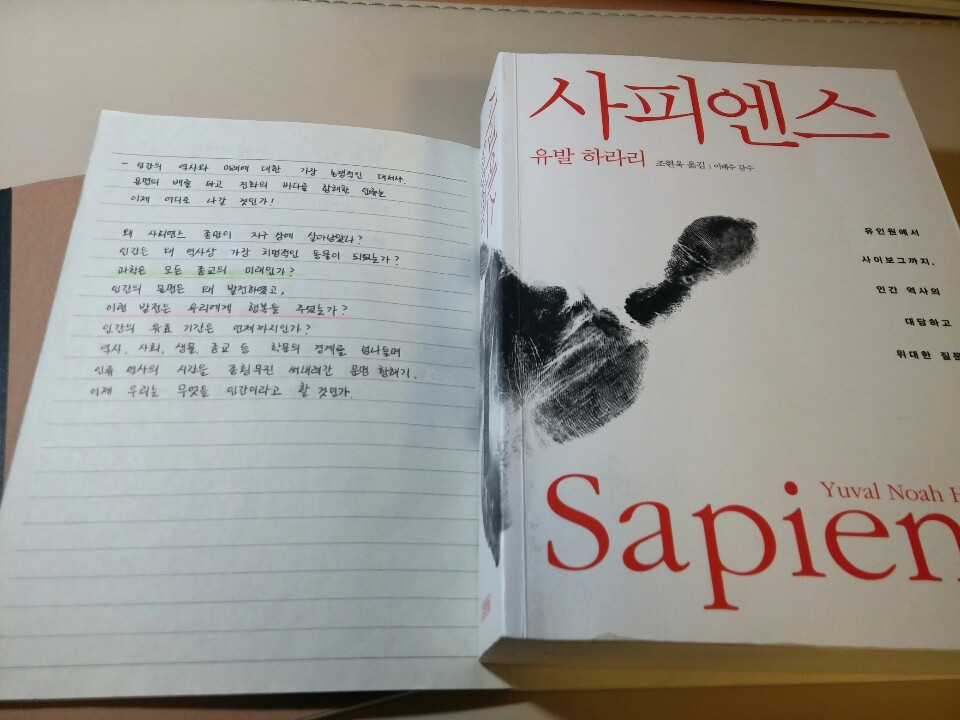 이번 겨울 방학을 기다려 아이도 <사피엔스>를 열심히 읽었습니다. 글도 잘 읽히며 재미있고 특히 역사를 바라보는 저자의 관점이 매우 마음에 든다고 합니다. 시니컬하고 비판적이면서도 인류의 미래에 대한 희망의 끈을 놓지 않는 태도가 책 전반에 걸쳐 배어 나온다는 점에서 엄마와 아이의 의견이 일치했습니다.