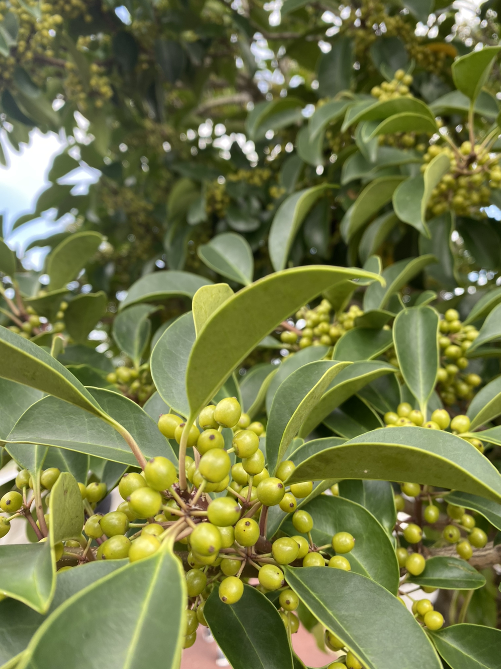 초록잎에 빨간 열매의 모습이 익숙한 먼나무는 지금 초록잎에 초록열매를 가졌다. 늘 빨간 열매가 달린 모습을 보고서야 먼나무라는 걸 알아차린 탓인지 먼나무에 초록 열매가 달린 모습이 어색하면서도 한겨울에 초록잎에 빨간 열매를 달고 하얀 눈을 맞으며 서 있을 먼나무가 기대된다.