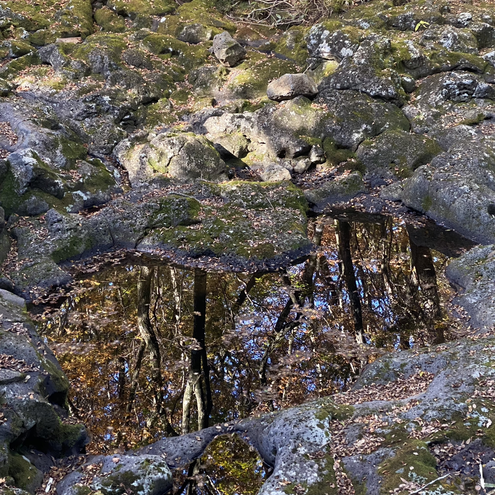 가을이라 하늘은 파랗고, 여름처럼 뜨거운 날씨 탓에 구름은 하얗고, 육지에 비하면 한라산 단풍은 시시한 편에 속하지만, 노랗고 빨간 생기 가득한 나뭇잎들이 햇빛 속에 별처럼 빛나고, 사각사각 소리를 내며 떨어지는 낙엽비가 아름다웠다. 까만 현무암 위에 생긴 물웅덩이는 반짝이는 거울이 되어 하늘도 비추고, 나뭇잎도 비추고, 가을을 가득 담고 있다. 빛의 속도처럼 빠르게 가을이 지나갈까 봐 잔뜩 겁먹었던 나는 가을을 더 보고 즐길 수 있을 것 같다.