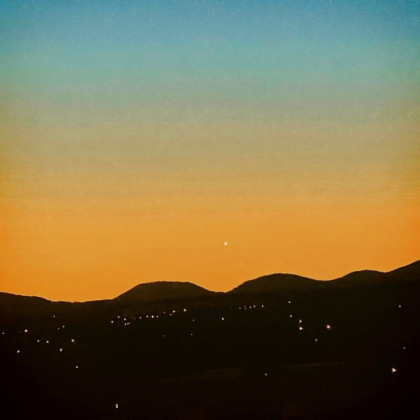 주황과 파랑 사이, 오름과 오름 사이에서 유난히 밝게 빛나는 별이 보인다.