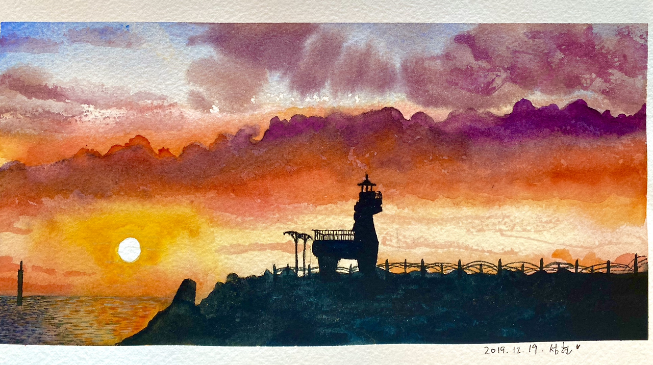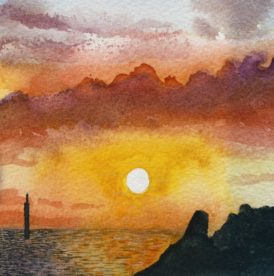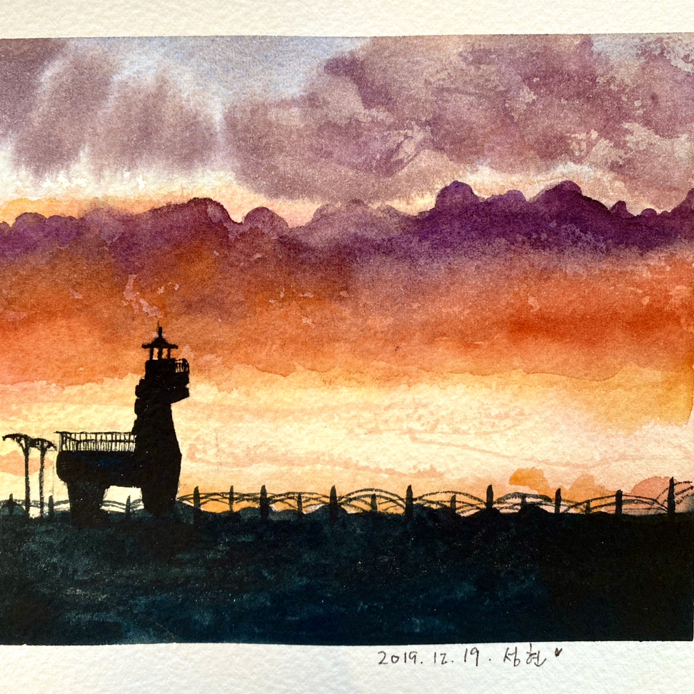 제주에 산지 9년 차, 대략 3천 번의 해가 지는 동안 매일 노을을 눈으로 좇고, 사진으로 찍고, 때론 이렇게 그림으로 그려 기록해 왔다.