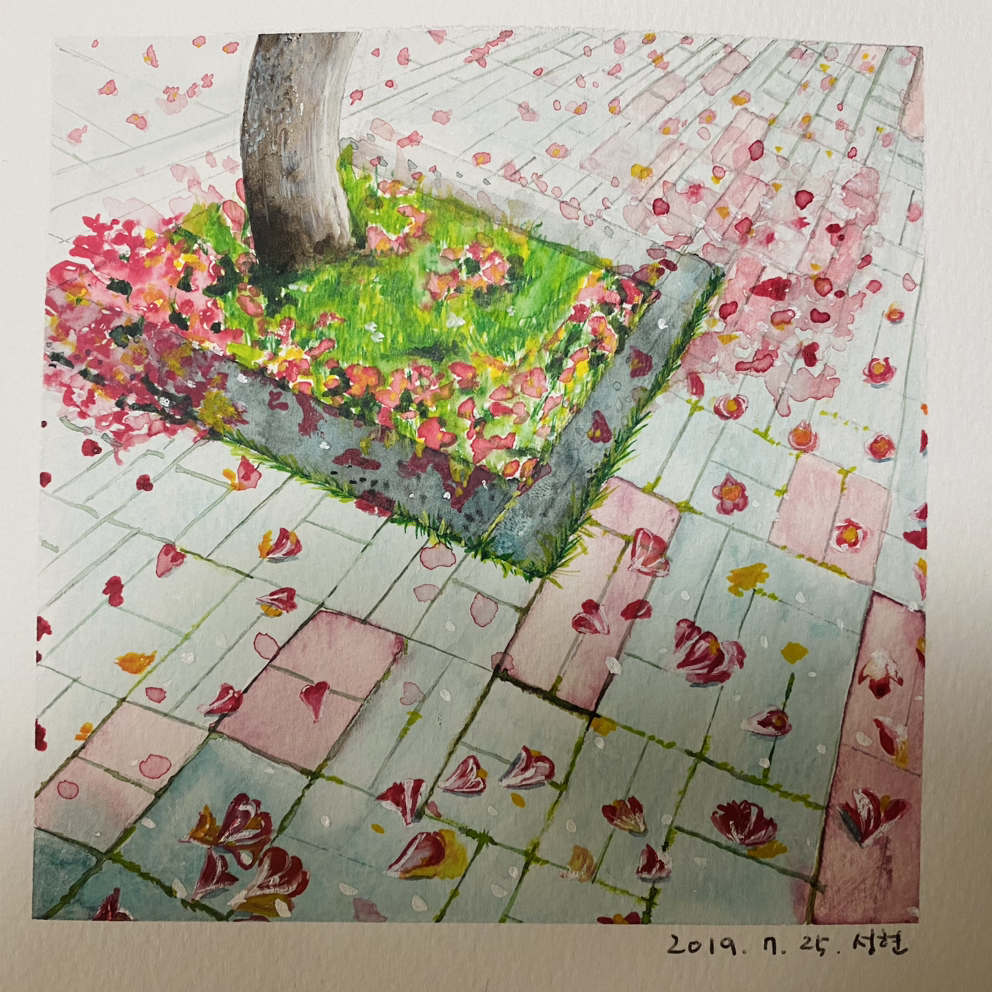 그러나 슬프던 어쩌던 예쁜 건 예쁜 거고, 내가 그린 낙화는 슬픔이 아니라 예쁨이었다.