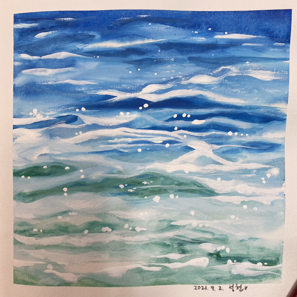 수채화로 그려 본 윤슬인데, 아직 좀 더 익숙해져야 하나 보다. 눈을 살짝 (세모로) 뜨고 보면 좀 괜찮아 보일 수도…
