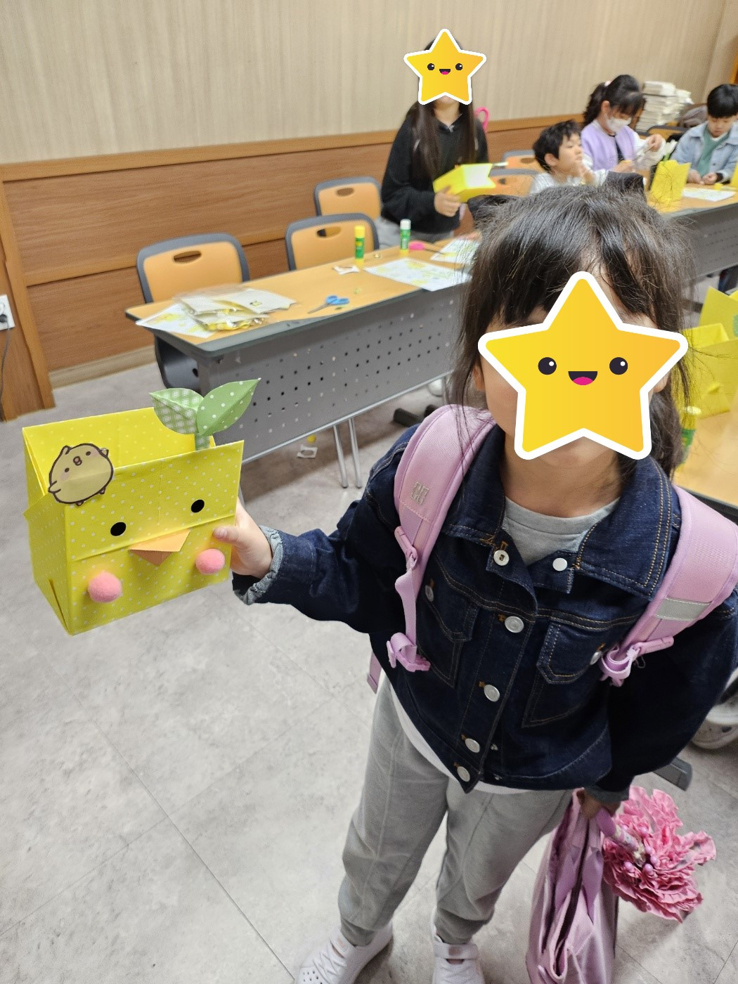 늘봄교실에서 수납상자를 만들고 뿌듯해 하는 어린이^^
