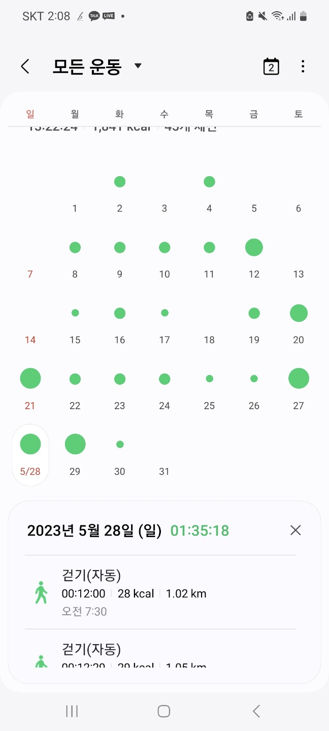 작년 2023년 5월 28일에도 1시간 35분의 걷기를 했었다