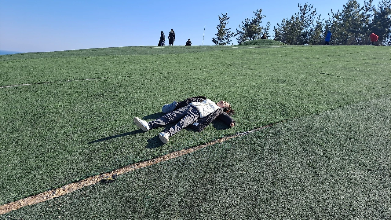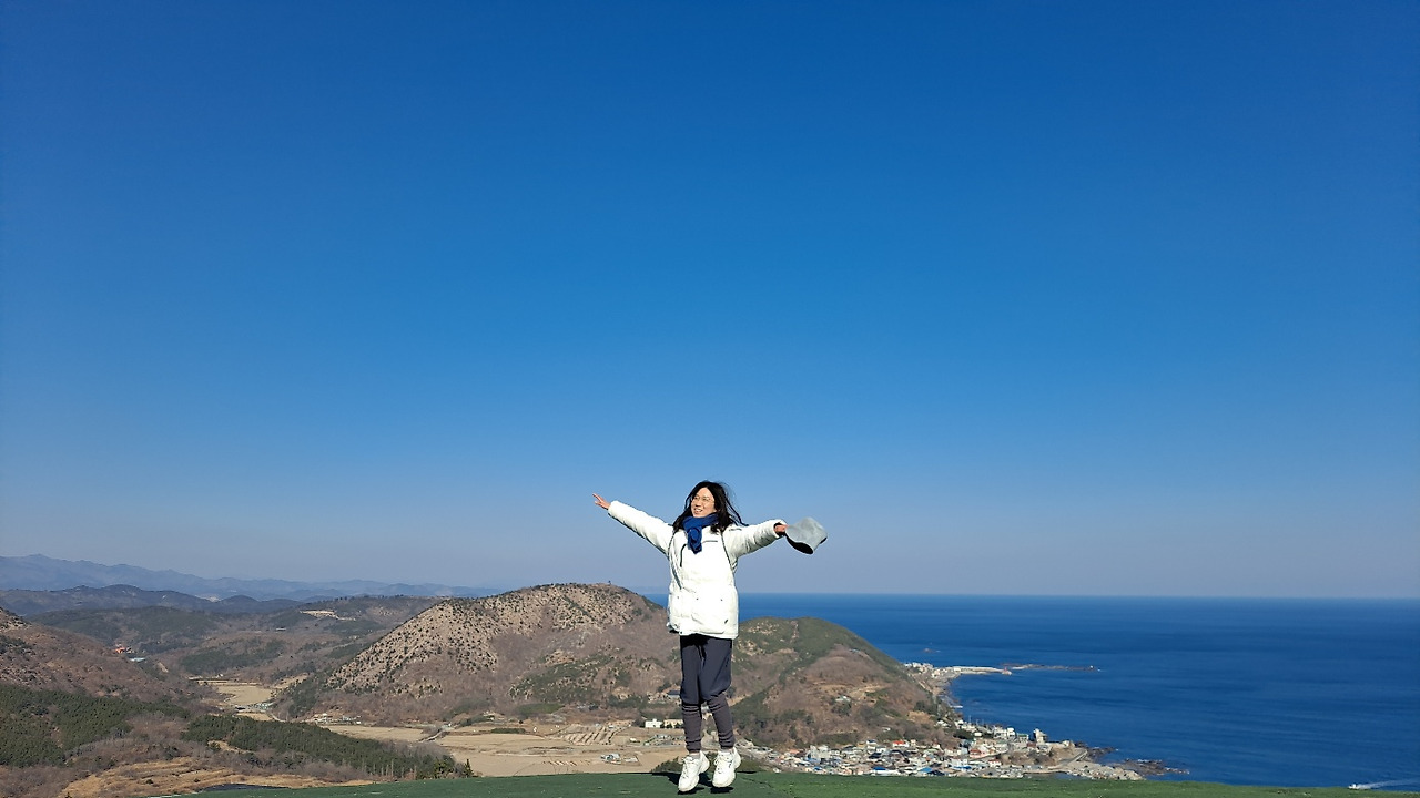 연우와 나란히 앉아 이런저런 얘기하면서 우리 이제 싸우지 말고 앞으로 남은 포항여행 잘하자 할 때쯤 바람이 휙 불어와 내 마스크가 저기 산 아래로 뒹굴뒹굴 굴러갔다. 그런데 또 연우는 그 마스크 구하러 가겠다고 바람에 날리는 하얀 마스크 주우러 여기저기 뛰어다니며 웃고 우리는 또 웃었다. 포항 하늘이 우리를 향해 잘 왔다고 씨익 미소를 지어주는 것 같았다.