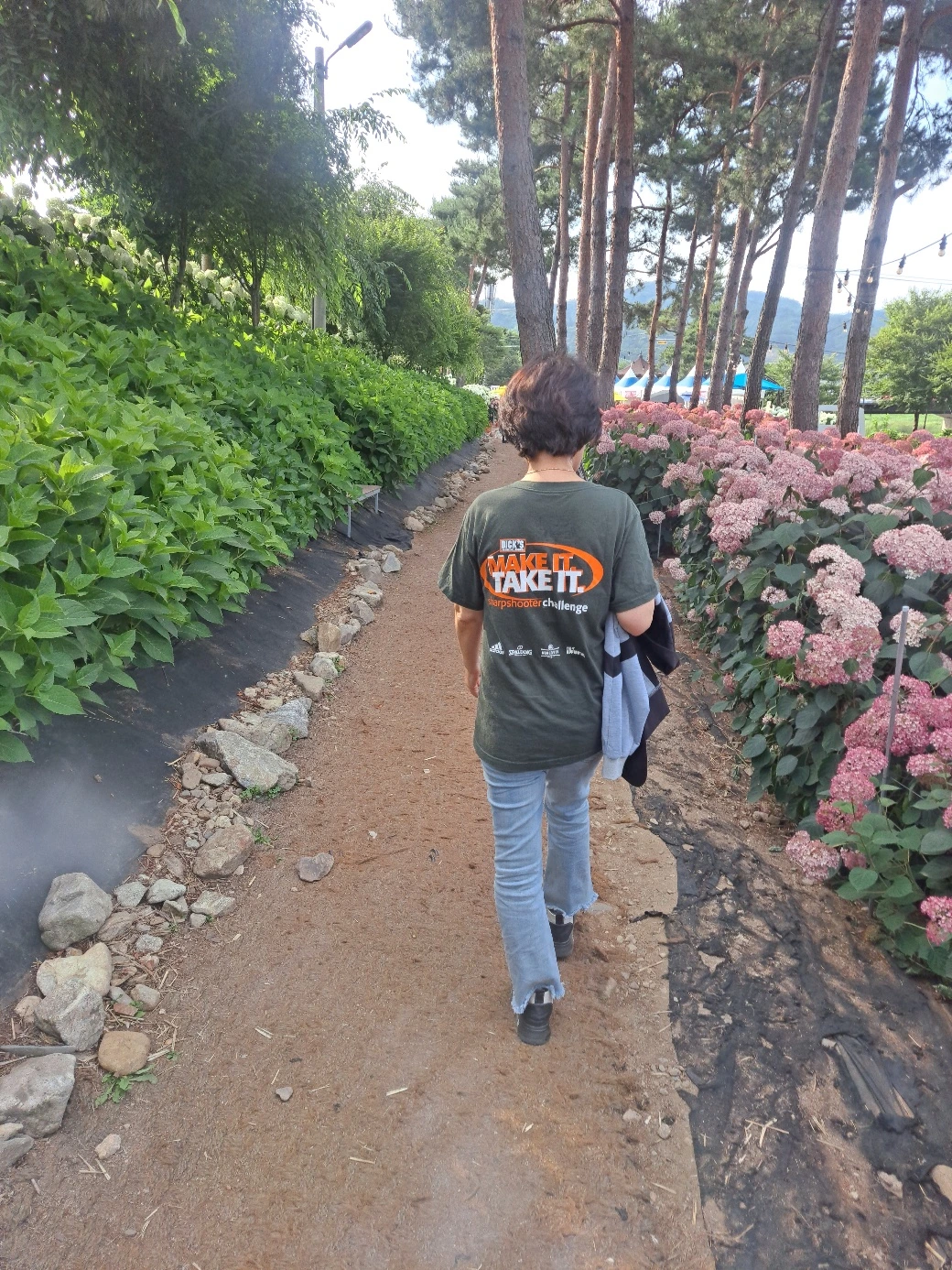어제는 내가 좋아하는 선생님과 꽃구경을(유구 수국 축제)하러 갔다. 한 번은 뒤에서 사진을 찍으며 맡았고, 또 한 번은 나란히 걸으며 이야기할 때 살살 불어오는 바람에 꽃향기와 품격 있는 그분의 말 향기가 한데 어우러져 머리로 그 냄새를 맡을 수 있었다. 선생님의 생각 향기가 좋았다. 처음 만났을 때는 어렵게 느껴졌는데 자주 뵙고 이야기하다 보니 참 어른의 향을 가지고 계신 분이셨다. 앞으로 더 자주 인사드리고 이야기하면 그 내음이 내 몸에 배려나?