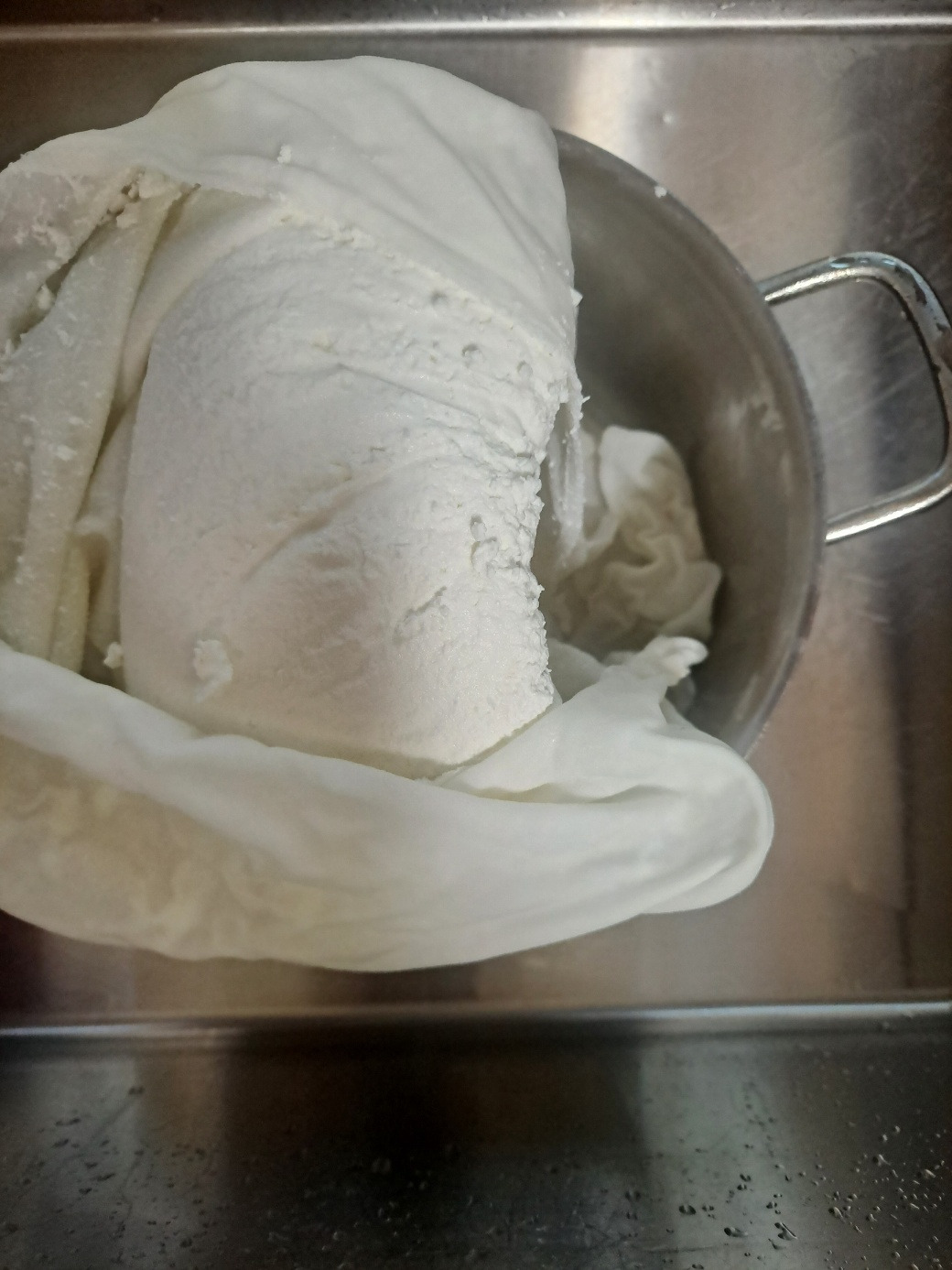 리코타 치즈는 원래 우유와 생크림 두 가지를 섞어 냄비에 넣고 가열하다가 끓어오르기 직전 식초를 적당량 넣어 덩어리지게 만든 다음 면 보자기에 걸러 수분을 짜주면 만들 수 있는데 나는 생크림이 없으므로 우유와 요거트를 만들고 나온 유청과 값싼 식초만 가지고 만들었다.