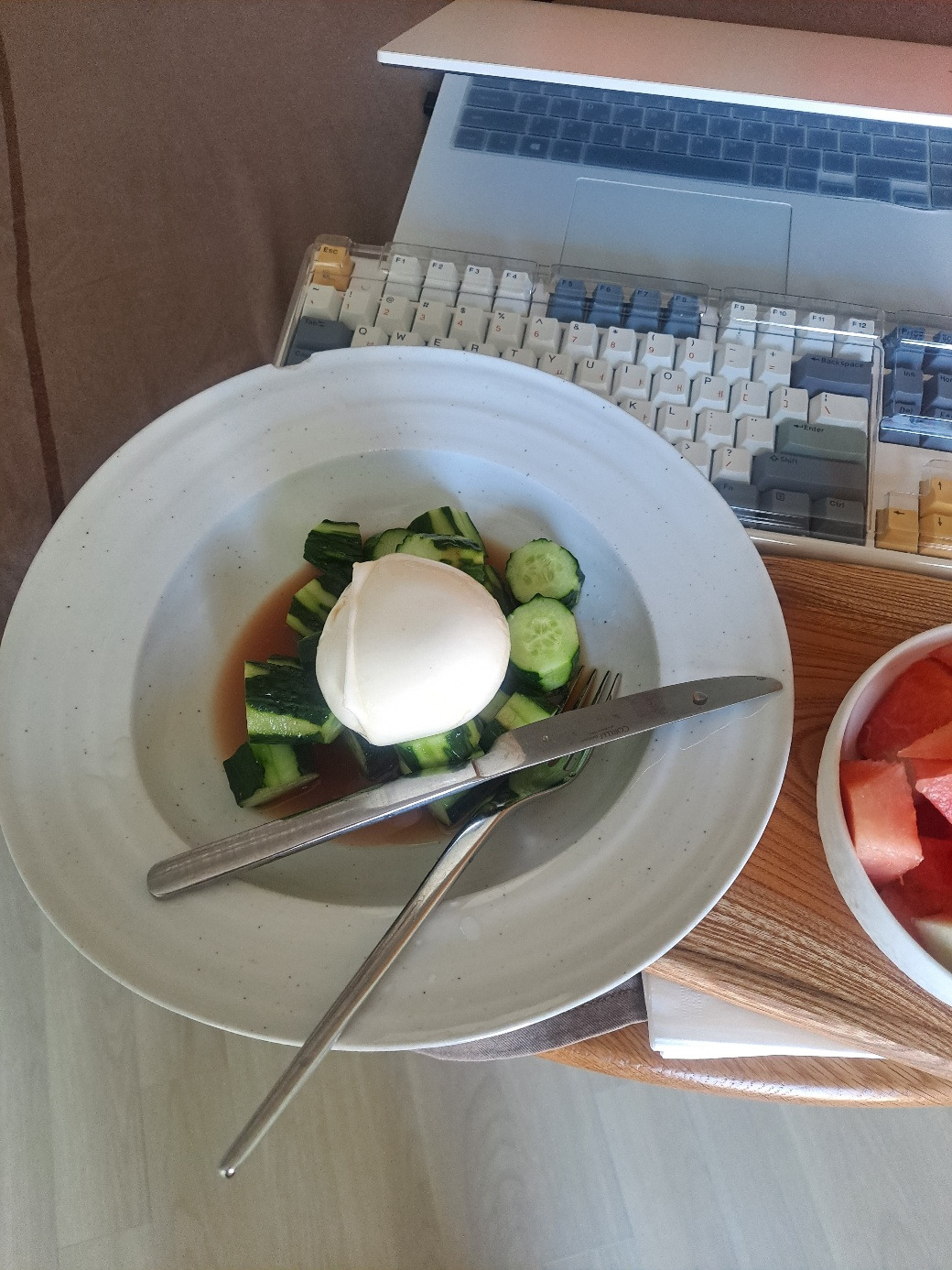 냉장고 야채칸을 보니 시들어가는 오이가 보인다. 오이는 이렇게 저렇게 요리해도 맛있지만 나는 그냥 생으로 먹을 때가 제일 맛있고,다른 방법은 입에 넣기에 적당한 크기로 자른 다음 위에 모짜렐라 치즈 한 덩이 쿰척 올려주고 발사믹 식초 세네 바퀴 휘휘 돌려 뿌린 뒤 우아하게 포크와 나이프로 썰어 얹어 먹으면 내 집이 브런치 식당이 된다. 이래서 밖에 나가 외식을 못 한다.