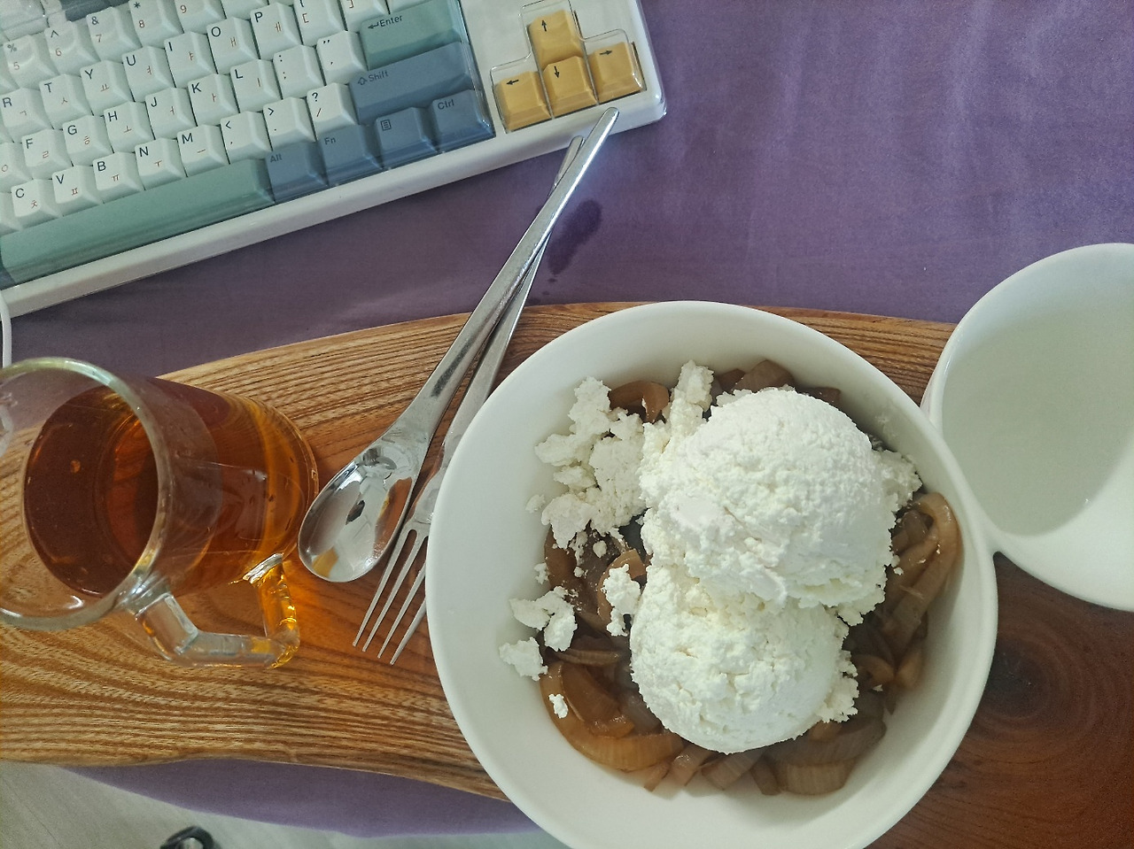 리코타 치즈 만들어 면보에서 걸러주고 양파조림에 2스쿱 올려먹음