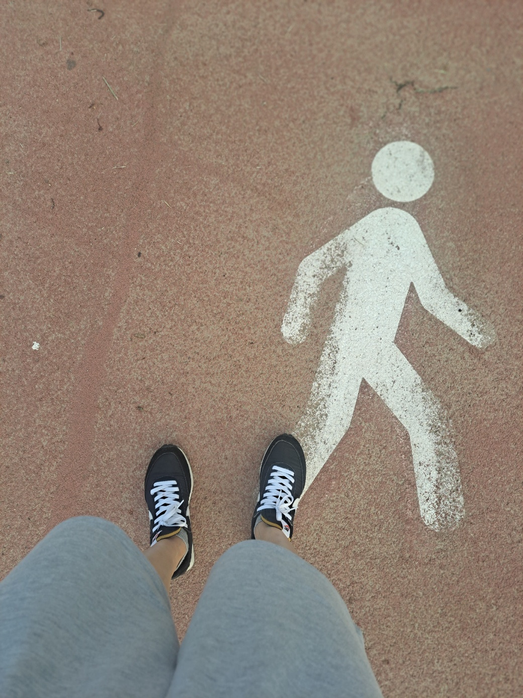 러닝머신에서 뛰는 거와는 차원이 달랐다. 50m도 채 못 달라고 헉헉거리기 시작했다. 5킬로 신청할 걸 그랬나 후회가 밀려왔다. 그래도 이대로 집에 돌아갈 수 없어서 걷기라도 할까 했는데 달리는 트랙을 내려보니 사람 모양의 마크가 일정한 간격으로 페인트칠되어 있었다. 대략 30~50m 간격으로 그 마크가 보였다. 표시가 보일 때까지 뛰었다가 다음까지는 걷고 뛰고 걷고를 반복하니 한결 할 만했다. 인터벌 러닝이라고 해야 하나…. 그래도 힘들었다.