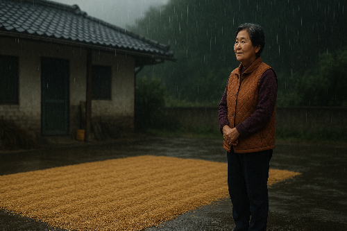 마당에는 아버지가 농사지으신 벼 낟알을 널어 말리고 계셨고,